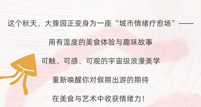 从豫园商城变身“美食痛园”,再到浪漫多元的2025外滩艺术季,大豫园文化区在这个秋天已准备好了缤纷活动,等待你来加入!国庆假期将至,快约上玩乐搭子,一起解锁美好的十月吧~