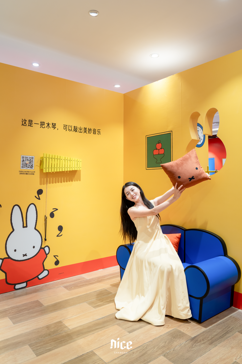 享用美食之余,还可以尽情探索空间内多个互动区域——对着镜子试穿米菲小花衣的拍照打卡区;和米菲一同玩木琴的音乐互动区;可以撸起袖子拿上乒乓拍和伙伴来一场的米菲乒乓运动区;可以邮寄主题明信片的米菲小邮局;以及“迪克布鲁纳先生和米菲”迷你展览区等,高萌大片简直停不下来~