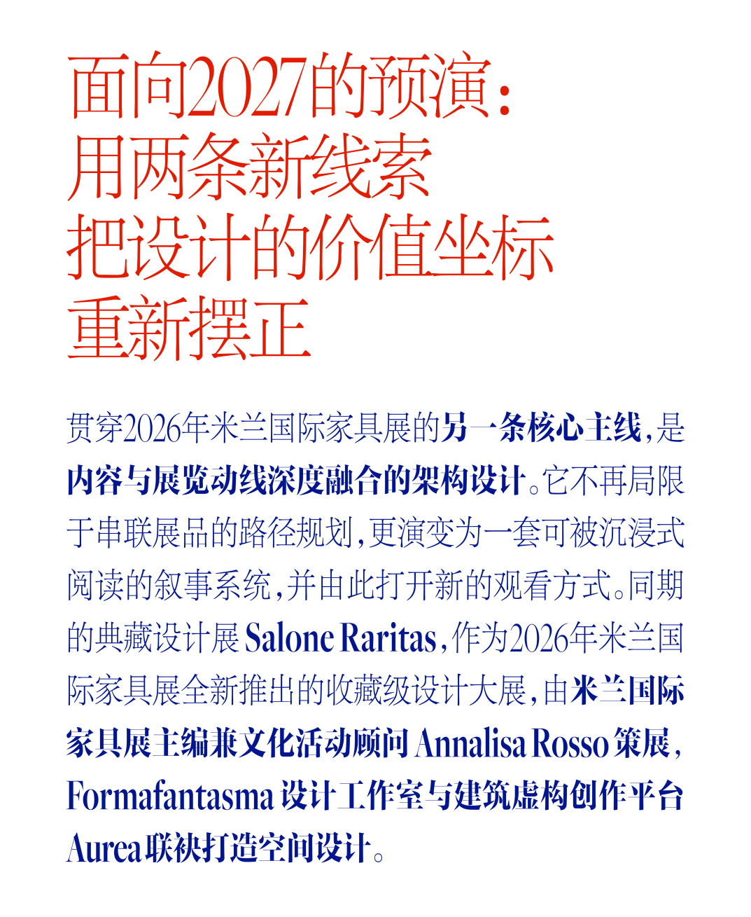 Salone Raritas 的定位并非单纯的奢侈品类展示,而是一项聚焦设计本源、身份与视野的文化项目。它试图在高端创意设计与专业市场之间搭建桥梁,让标志性作品、独特创作与高端制造在同一叙事中形成连贯的价值坐标,同时为建筑师、室内设计师与酒店业等专业人群提供一个更明确、更高质量的发现与对接平台。在这里,稀有性更像一种方法,它把特殊创意生产与当下的需求连接起来,使物件以当代语言被看见、被理解,也被重新定义。