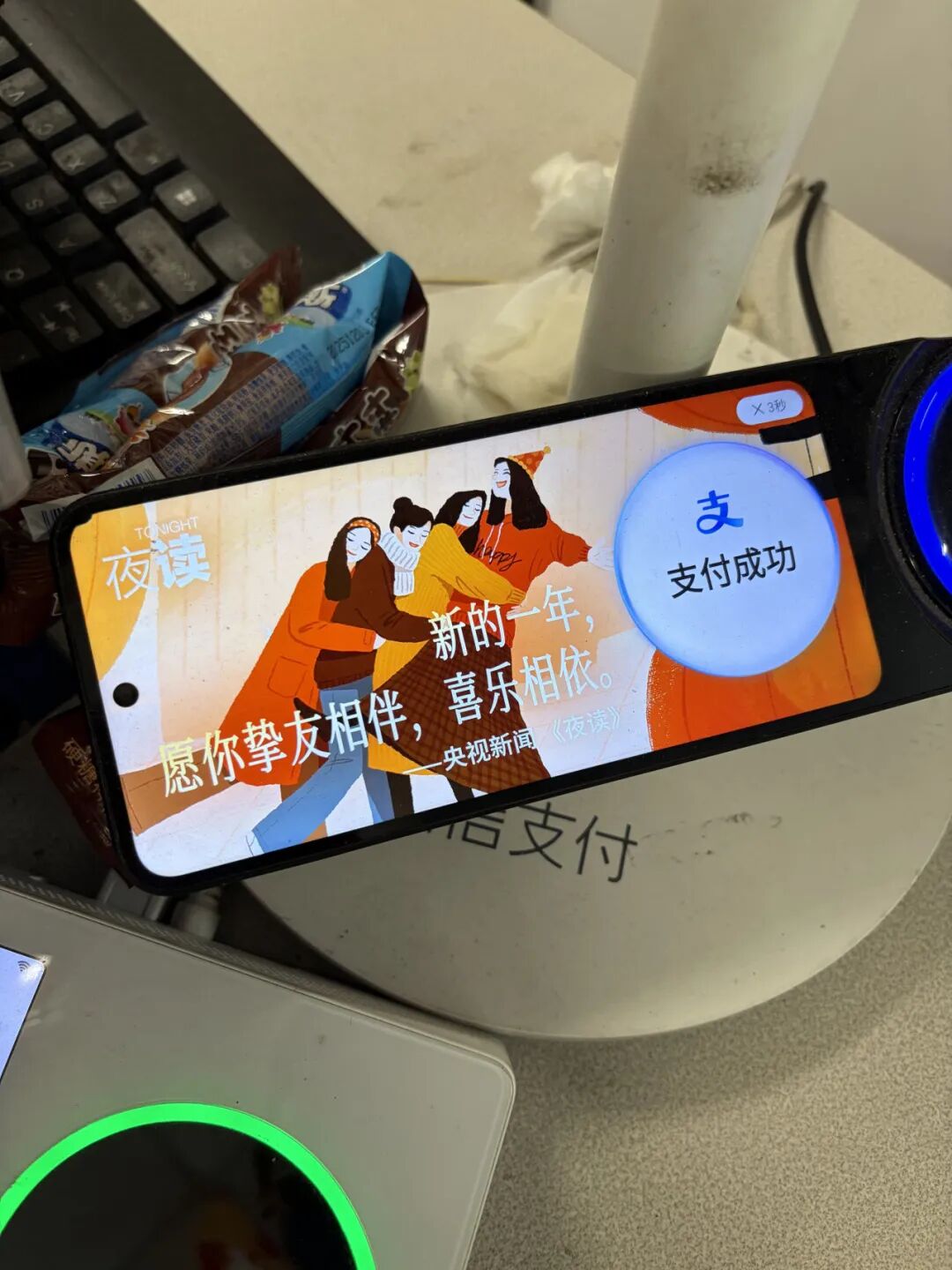 @早睡不迟到,锻炼:今天又碰到了央视新闻夜读的祝福语,去超市付费时看到,感觉情绪价值好足,又好看又温暖!