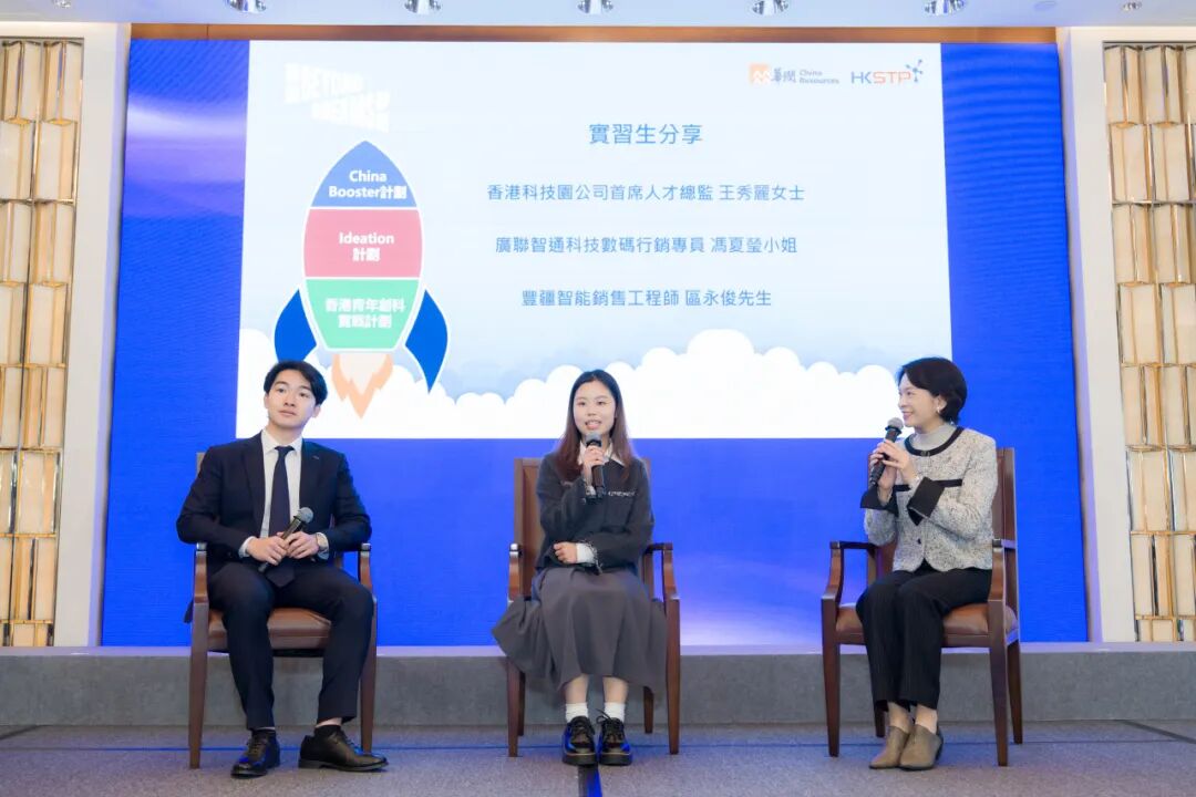 在分享环节,2位实习生代表分享了在初创企业的成长故事,来自广联智通的冯夏莹分享了关于 “远程控制产品改善用户生活” 的经历,这段经历坚定了她投身创科的决心。他们的故事,正是香港青年逐梦科创的生动缩影。