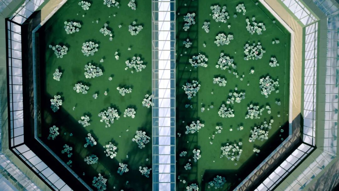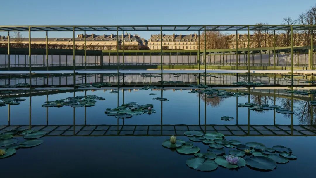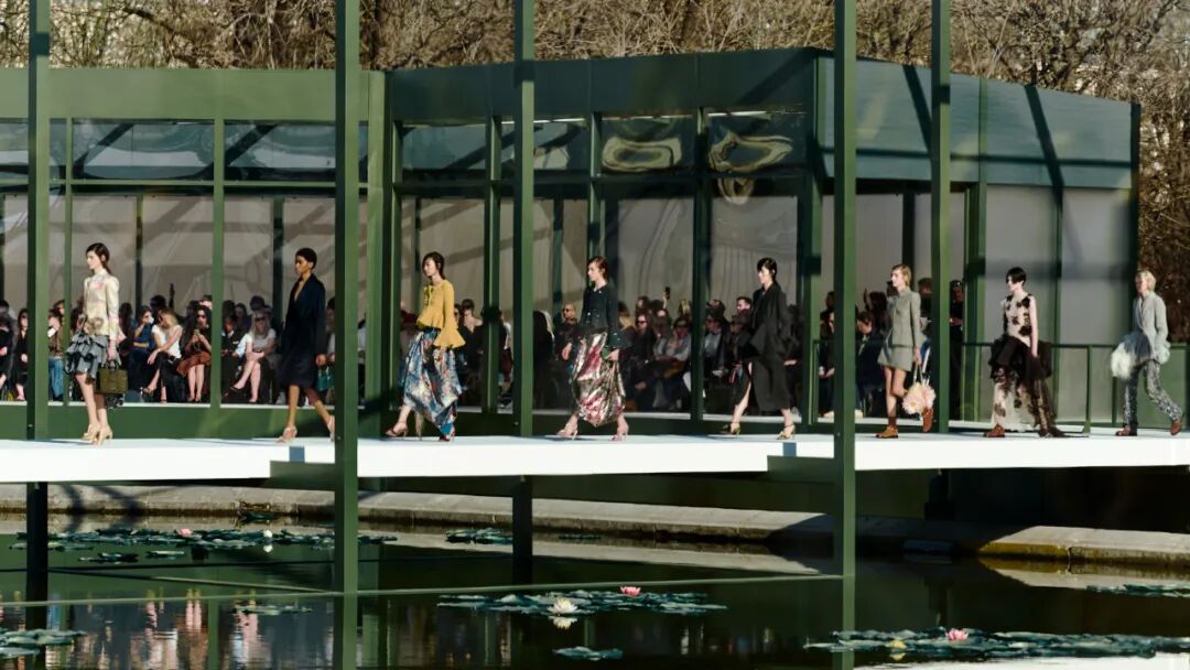 秀前播放的影片中,安德森与贝拉·弗洛伊德(Bella Freud)并肩坐在巴黎经典的绿色公园椅上,畅谈睡莲与它独特的视觉张力——水面之上,摇曳生姿,水下世界却朦胧难辨。