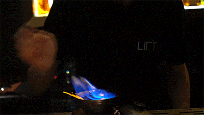 火焰在琥珀色酒体上跳跃