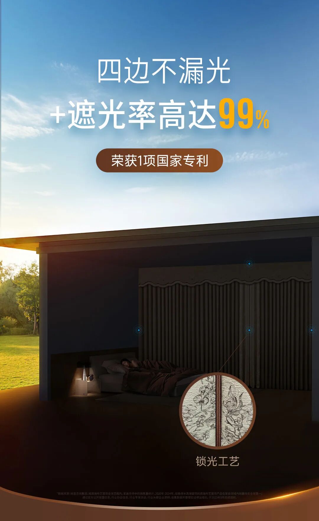 ✨ 专利防漏光技术:99%物理遮光+四边不漏光工艺,窗外天光大亮,卧室依然如深夜般静谧,让褪黑素自由分泌。