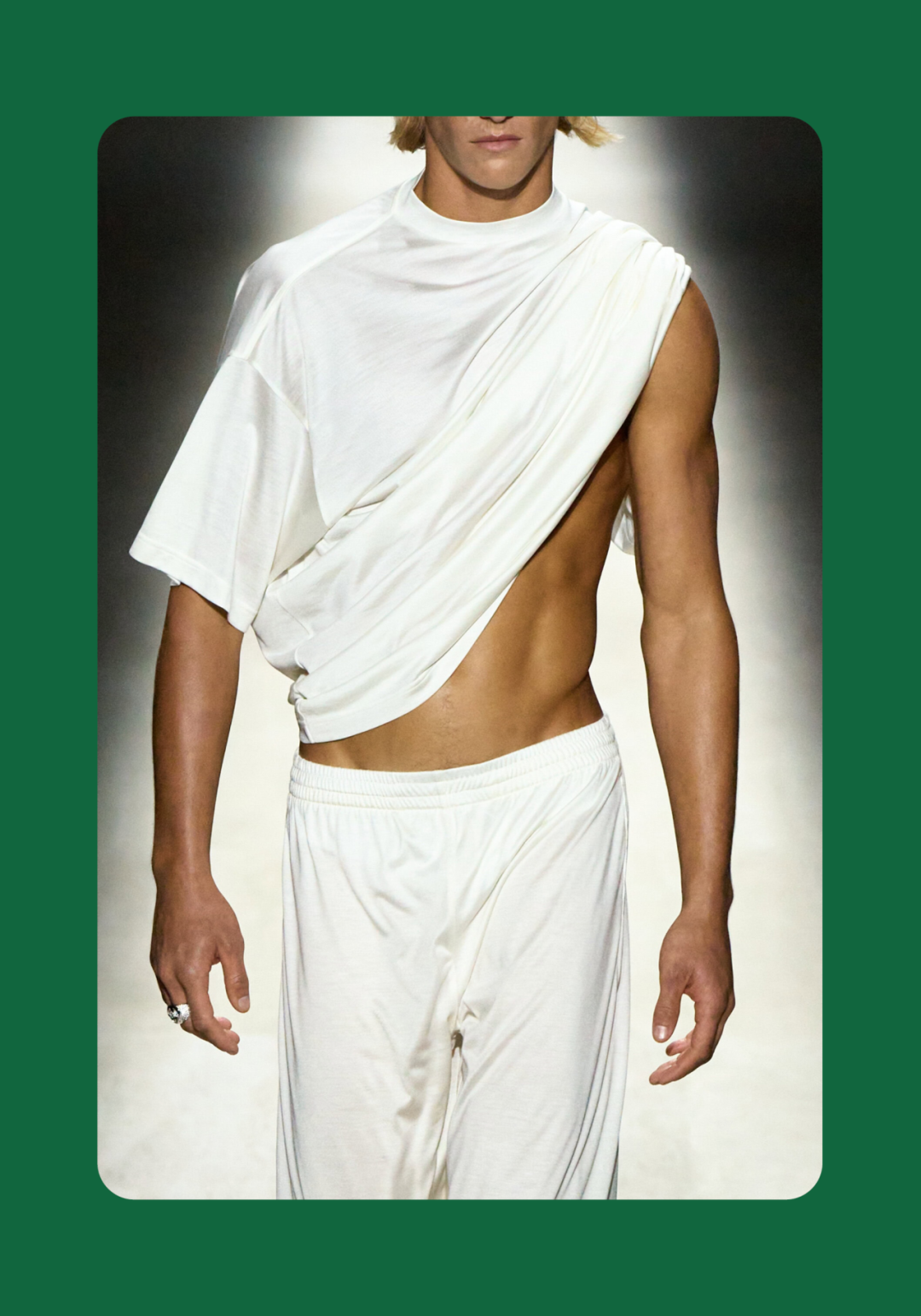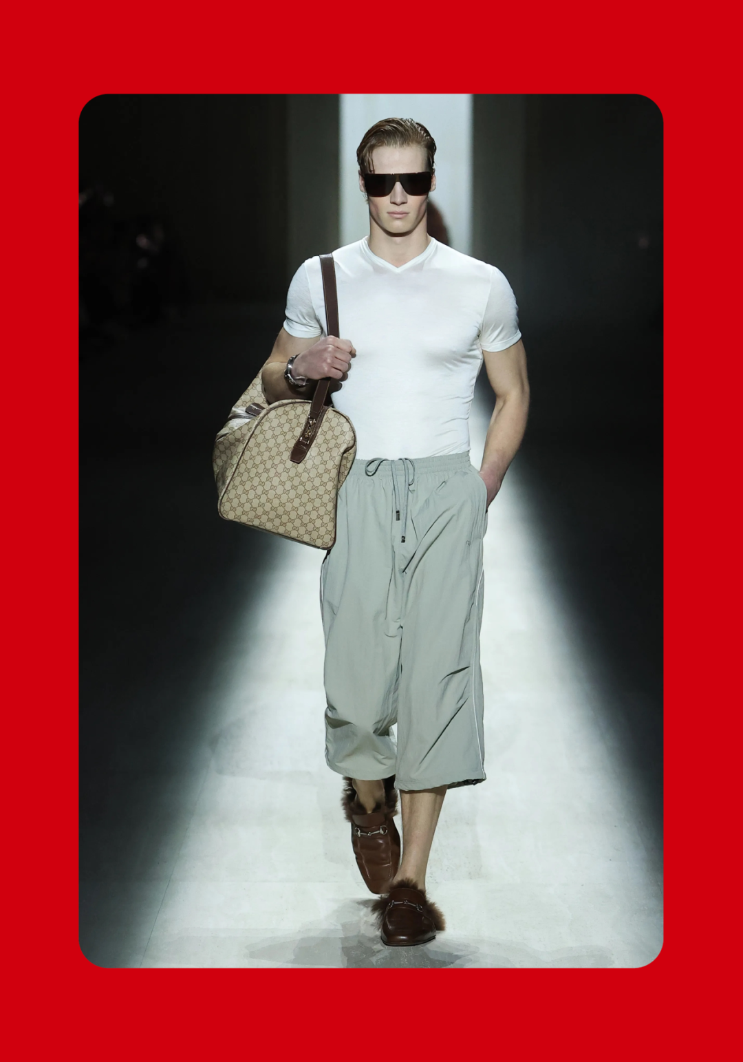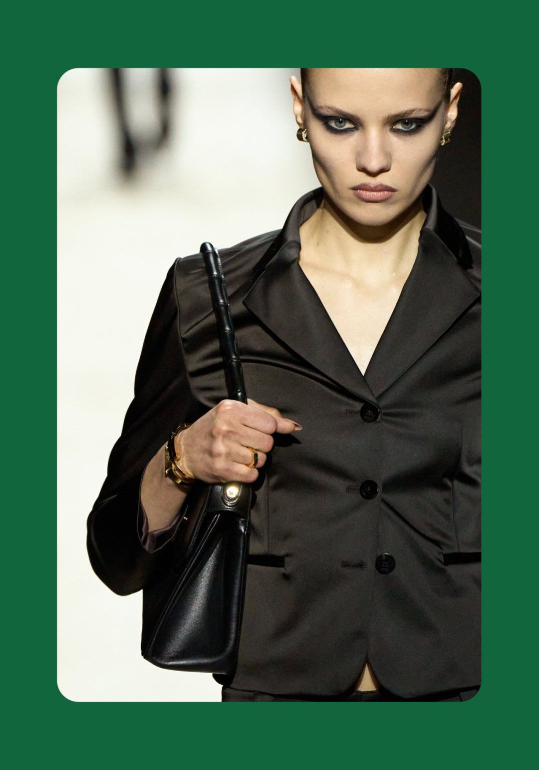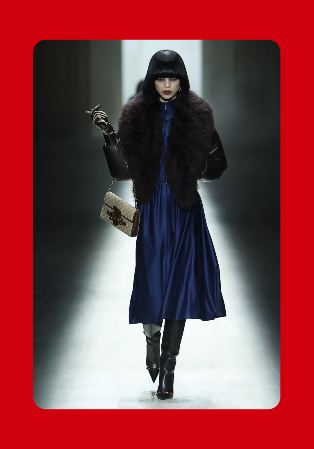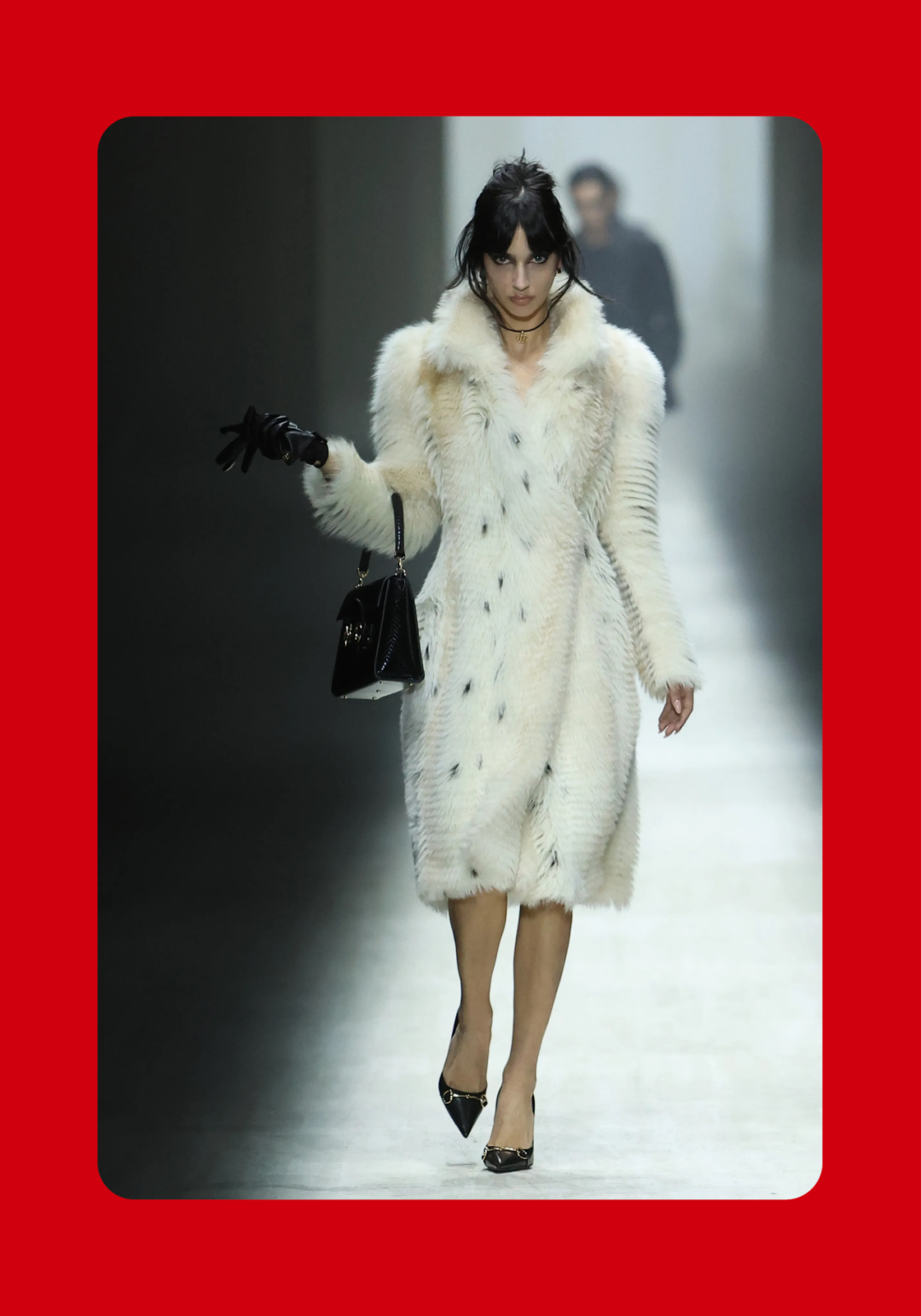 1、Demna 眼中的“城市人物学” 法国哲学家 Michel Foucault 曾指出,社会并不仅仅通过制度或话语被理解,它同样体现在日常生活中无数细微的身体实践之中——姿态、动作、行走的方式,以及人们如何展示自身。换句话说,一个社会真正的结构,往往隐藏在这些看似平凡的细节里。 从这个角度来看,Gucci 2026 秋冬系列所呈现的场景更像一次微妙的社会观察:陌生人之间短暂的凝视、迅速的判断,以及彼此擦肩而过的瞬间,共同构成了城市生活最真实的节奏。 当模特从黑暗的空间中走上那条极其干净的白色跑道时,观众很快意识到,这些角色几乎都可以在米兰街头找到对应的原型。紧贴身体的亮片迷你裙、手提小型珠宝手袋的造型,让人立刻想到 Porta Venezia 周末夜晚出现的那些年轻女孩,她们踩着“恨天高”穿过酒吧街区,身体本身就是一种公开的社交资本。下一刻,皮草与紧身皮裤的组合又带来另一种熟悉的形象——Monte Napoleone 奢侈品街区的购物 Diva 们,那种冷静而专注的姿态,几乎和橱窗里的手袋一样昂贵。 这种城市切片在秀场上不断变化。白色套装与蝴蝶结衬衫的出现让画面突然变得理性而克制,像是刚刚走出米兰商业区办公室的职业女性:也许是律师事务所的助理,也许是 CEO 的私人秘书。紧接着,轮廓又再次贴紧身体,肌肉线条被放大到近乎雕塑的程度,让人想到 Porta Nuova 那些高端健身俱乐部里的私人教练。 与此同时,夜晚的社交世界也被带进了这个空间。亮片裙、高跟鞋与过于招牌式的微笑,让某些角色看起来像是来自私人俱乐部卡座中的常客。接下来出现的则是另一类熟悉面孔:那些频繁出现在品牌活动与发布会上的时尚行业公关,他们的衣服看似随意却精心搭配,神情带着一种对这个行业过于熟悉的疲惫感。 而当一个穿着银色蛇纹裤和紧身 T 恤的年轻男孩出现时,秀场的坐标突然被拉向城市的另一端。意大利语有一个词来形容这种类型——Maranza。这个词通常指来自城市外围区域的年轻人,他们穿着张扬、姿态自信,同时又带着某种对精英文化的讽刺。 最终,整场秀在另一种熟悉的意大利女性形象中落幕:披着皮草披肩、长裙曳地的贵妇。她们的气质让人联想到科莫湖畔那些隐秘而华丽的别墅,亦或是 Luca Guadagnino 的电影《I Am Love》中 Tilda Swinton 饰演的 Emma——优雅、克制、表面冷静,却在沉默之中隐约透出一种对父权秩序的微妙抵抗 。 有趣的是,这种处理方式反而让整场秀显得异常坦率。Demna 并没有试图用复杂概念去掩饰欲望,也没有对这些女性的形象进行任何道德评判。夜生活女孩、办公室精英、购物女魔头——她们都以同样直接的方式出现在跑道上。不同的身体、不同的节奏与不同的社会位置被放置在同一个空间里,构成一种完整的城市生态。 从某个角度看,这几乎是一场以女性为核心的叙事。而这种不带审判的观看方式,让整场秀隐约带着一种对女性本身的欣赏与偏爱。 2、Demna 诠释的“新性感” Gucci 与性感之间的关系几乎已经成为品牌历史的一部分。三十年前,Tom Ford 用极端明确的方式重新定义了这个意大利品牌:低腰裤、几乎贴在皮肤上的丝质连衣裙、解开扣子的衬衫,以及那些大胆得近乎挑衅的广告影像。那一时期的 Gucci 性感带着一种高度风格化的夜生活气息——香槟、镜面、黑色大理石,以及略带颓废的派对文化。 Demna 显然清楚这段历史。秀场的结尾,当 Kate Moss 穿着一条露背礼服出现时,观众几乎立刻意识到那是一种明确的引用:背部完全敞开,腰窝与尾骨之间是一条镶嵌钻石的 GG 丁字裤。那一刻像是一个提醒——Gucci 从未真正离开过性感这个主题。但 Demna 所理解的性感,显然已经属于一个完全不同的时代。 今天的欲望结构早已改变。性感不再只存在于广告影像或夜生活文化之中,它已经渗透进日常生活的各个角落:健身房镜子前的自拍、社交媒体上经过计算的身体角度、付费订阅平台上的私人影像、甚至是那些阅后即焚的私密信息。在这种文化环境里,身体被不断展示、记录与交换,成为一种新的社会资本。 在这样的背景下,Demna 在这场秀里对轮廓的处理就显得格外清晰。过去十年,他几乎是 Oversized 美学最具代表性的设计师之一:宽大的肩线、拖地的裤子、模特脸上略显疲倦的冷漠表情,构成了一种带着反叛意味的反时尚姿态。而在这场 Gucci 秀里,这种比例关系突然被彻底改变。衣服被收紧到身体上,丝质针织连衣裙像液体一样包裹曲线,紧身背心紧贴肌肉线条,身体的结构被放大到几乎雕塑般清晰。 这种变化不仅是轮廓的改变,也是一种文化判断。秀场四周那些古典雕像像是在提供一个隐喻:石头里的身体与布料里的身体互相呼应。衣服在这里不再承担遮掩的功能,也不再提供距离感。它更像是一层包装,让身体本身成为视觉中心。 正因如此,这场秀的很多造型会让人产生一种奇怪的熟悉感。那些贴身针织、紧身裤装与曲线夸张的连衣裙,很容易让人联想到现实生活中的衣橱——Skims、leggings、或者各种专门为了展示身体线条而设计的服装。它们已经在城市中广泛存在,只是被 Demna 实实在在地放进了 Gucci 的语境之中。 在这种语境中,性感是一种“社会结构”。有人通过它进入夜生活世界,有人用它建立职业权威,也有人用它经营社交关系。从某种意义上说,这或许正是 Demna 对 Gucci 最直接的一种理解:这个品