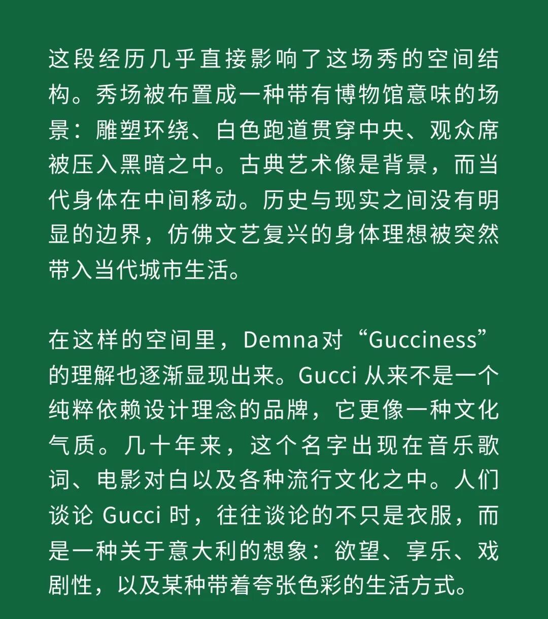 摘要:Demna的风格范式是超过时尚本身的,在Gucci这条白色秀道上观照社会。