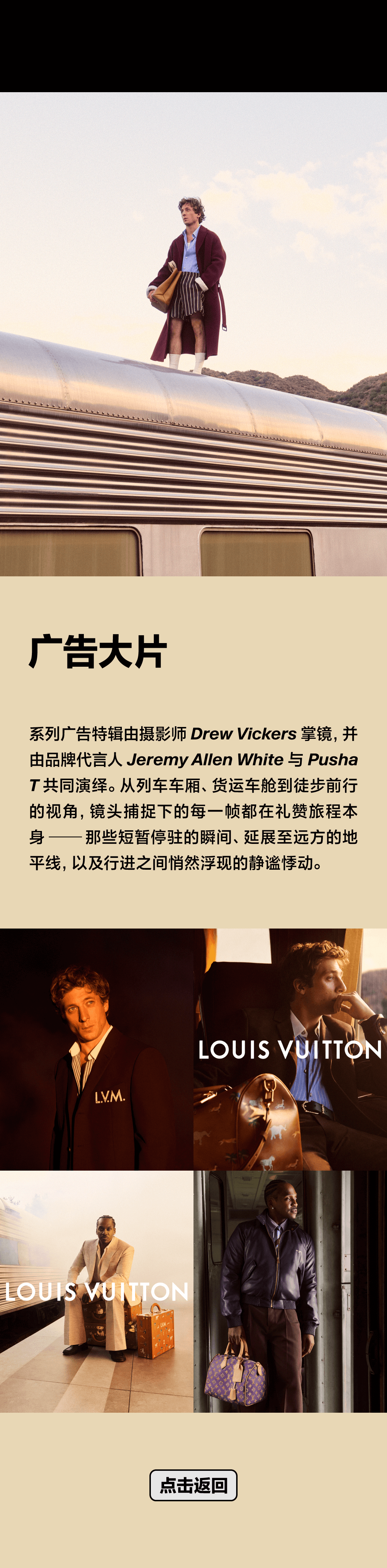 - 系列广告特辑由摄影师 Drew Vickers 掌镜,并由品牌代言人 Jeremy Allen White 与 Pusha T 共同演绎。从列车车厢、货运车舱到徒步前行的视角,镜头捕捉下的每一帧都在礼赞旅程本身——那些短暂停驻的瞬间、延展至远方的地平线,以及行进之间悄然浮现的静谧悸动。
