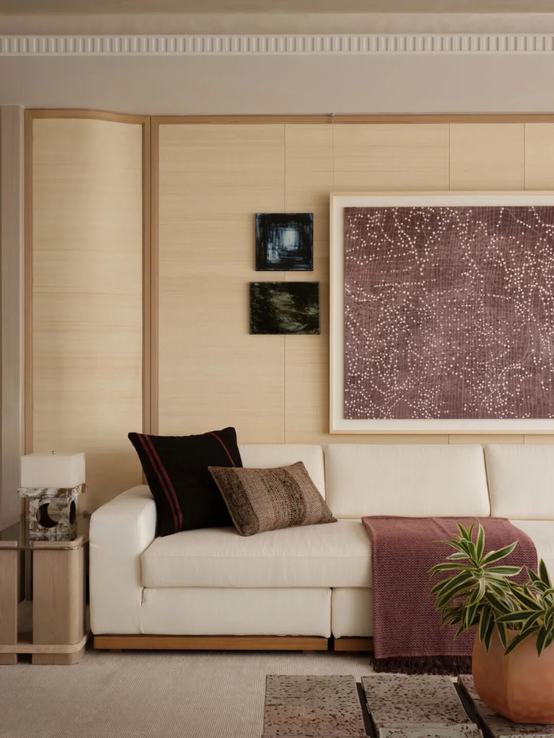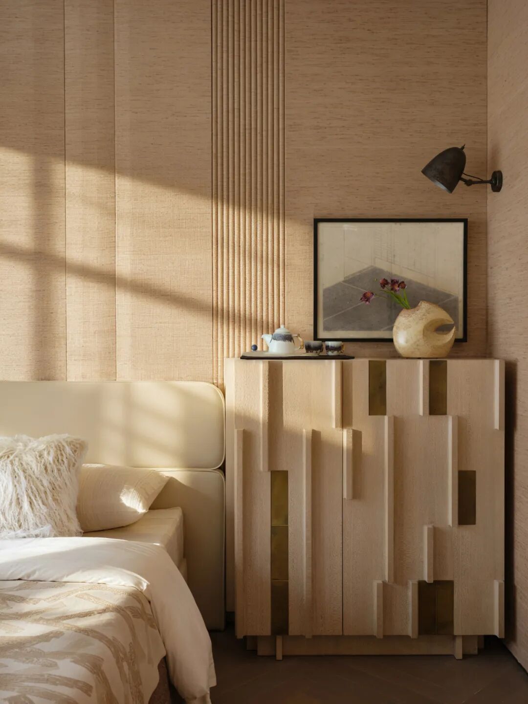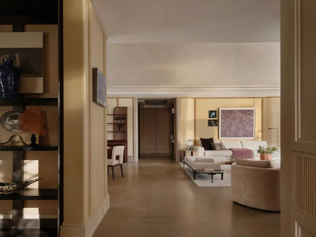 在具体层面,材料的选择强调时间感与质地,家具与器物并非作为视觉焦点而存在,而是参与空间秩序的建构——比例、留白、触感与光线共同作用,形成一种持续有效的情绪场域,以克制抵达内心的丰盈。