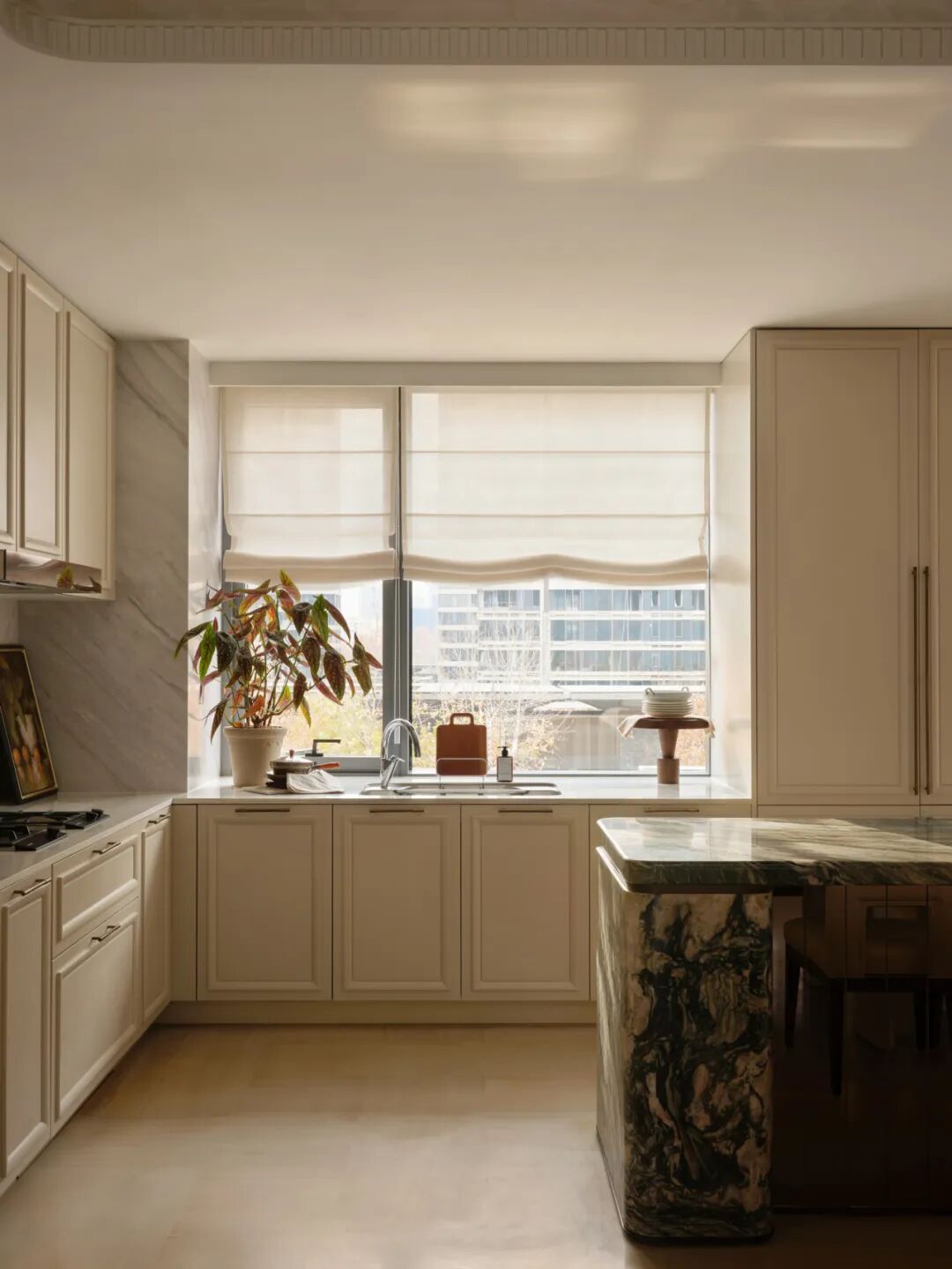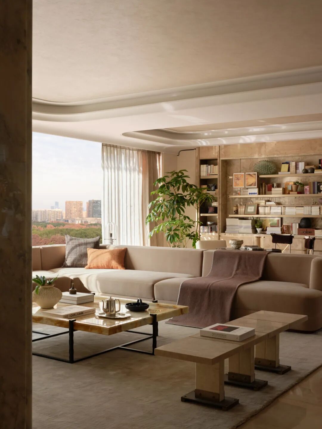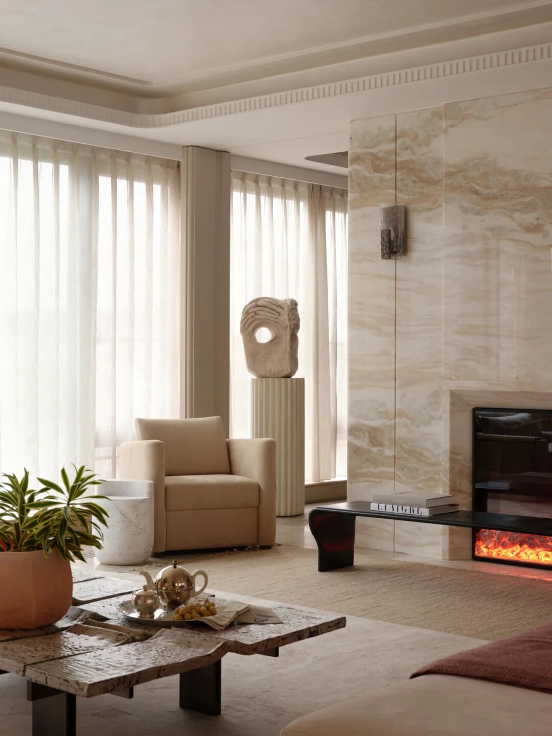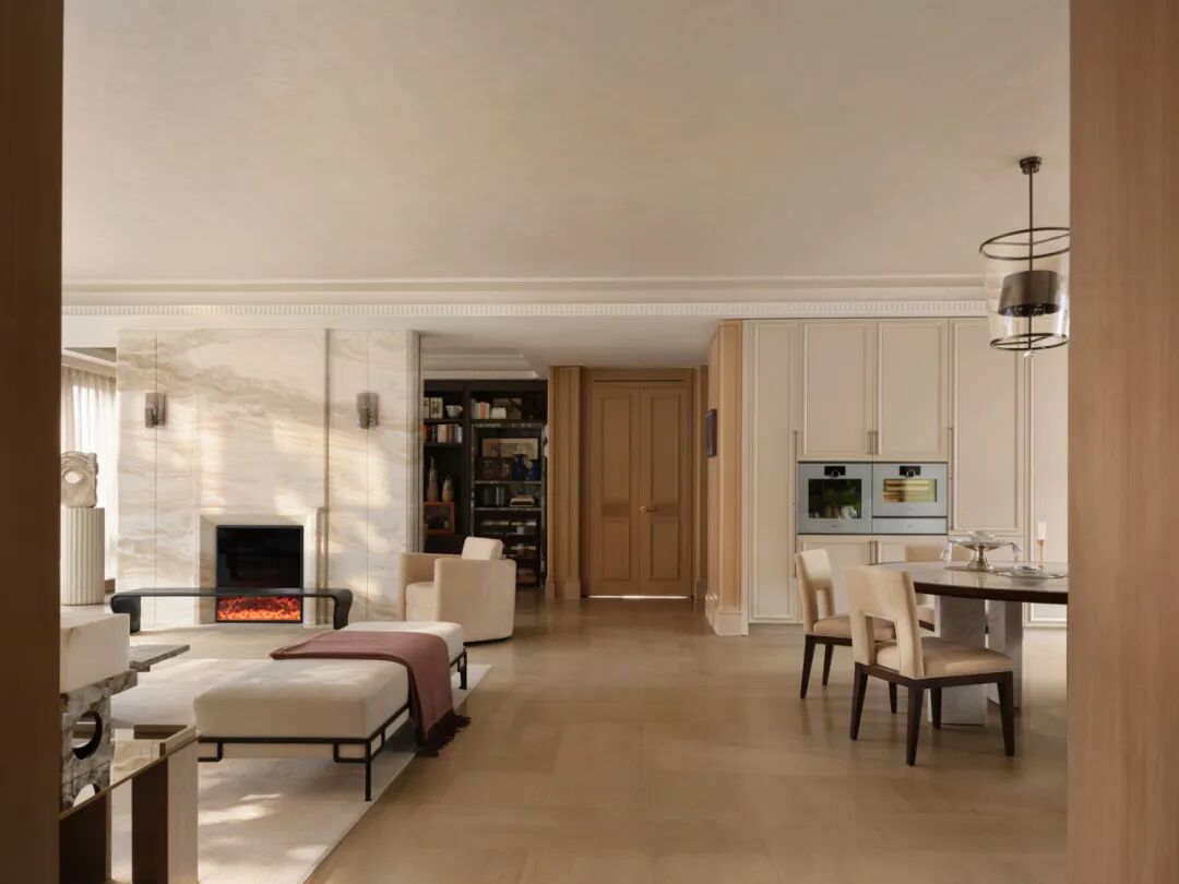 这也暗合设计团队始终坚持的折衷手法,以在地性为线索,从那些隐匿于城市肌理中的光线、尺度、材料质感与空间节奏出发,构建一处兼具生活温度与精神高度的栖居之所。以自然主义为底色,让空间回归与人最本质的关联。当符号被剥离,那些真正服务于人的价值便自然浮现。