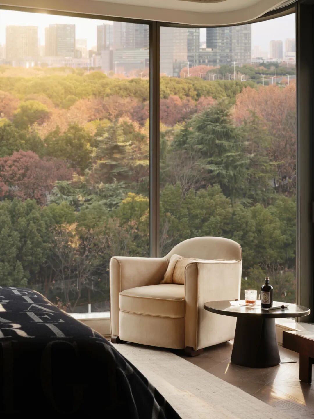 临窗设置艺术单椅与卡座,在全景采光下形成一个半公共、半私密的精神角落。