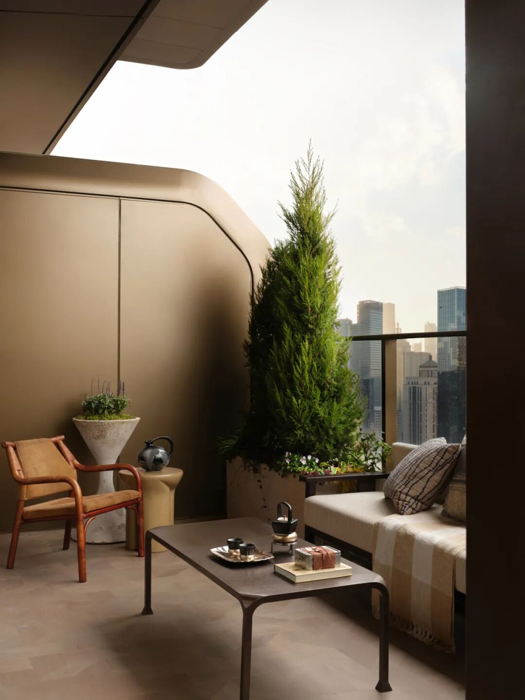 设计是有连续性的。它要在美的确定性框架内创造开放性,让不同的文化与风格可以交融、连通和共融。折衷作为手法,意味着不固守某一种语言,而是在多元中寻找和谐;自然主义作为底色,意味着空间始终保有一种与生俱来的松弛感,不过度设计,不刻意为之。