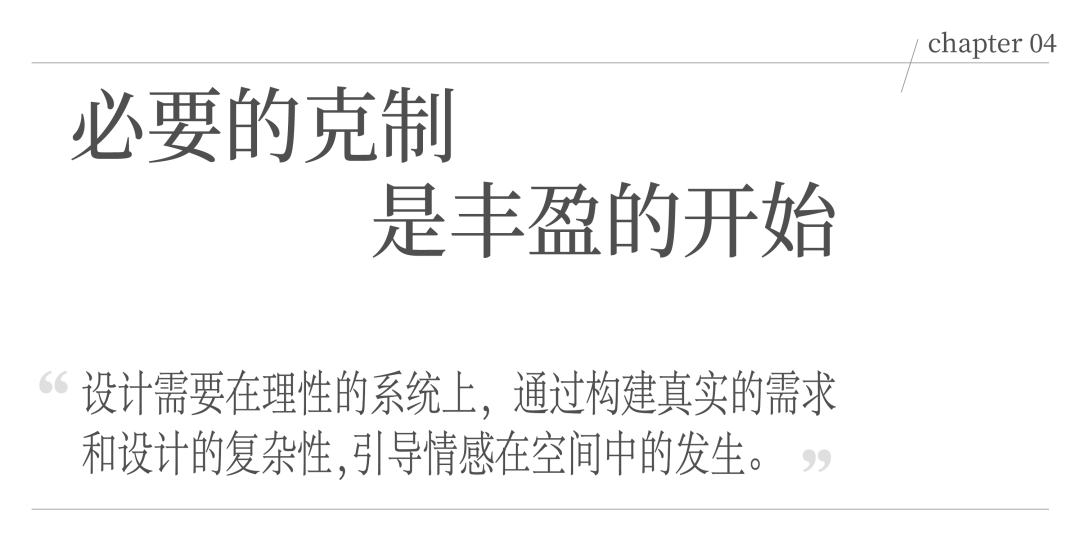 设计所提出“必要的丰富”,并非材料和家具的堆砌,而在于如何在有限的物理边界内,容纳多重关系的并存,并为情感的生成预留空间。