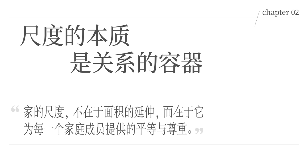 家庭是多重意志的集合,它包含代际差异、情绪波动与价值判断。而设计理应符合当代家庭结构的变化:社交与独处并存,陪伴与自我空间并存。空间不只是单纯的功能分配,而是关系的组织,是代际之间无声的对话与理解。这是一种隐性的公平,一种不言说却被身体感知的尊重。