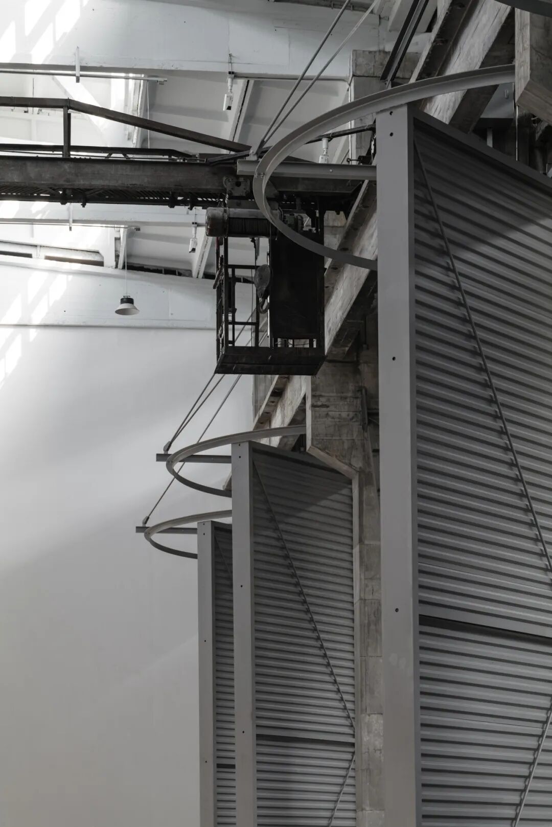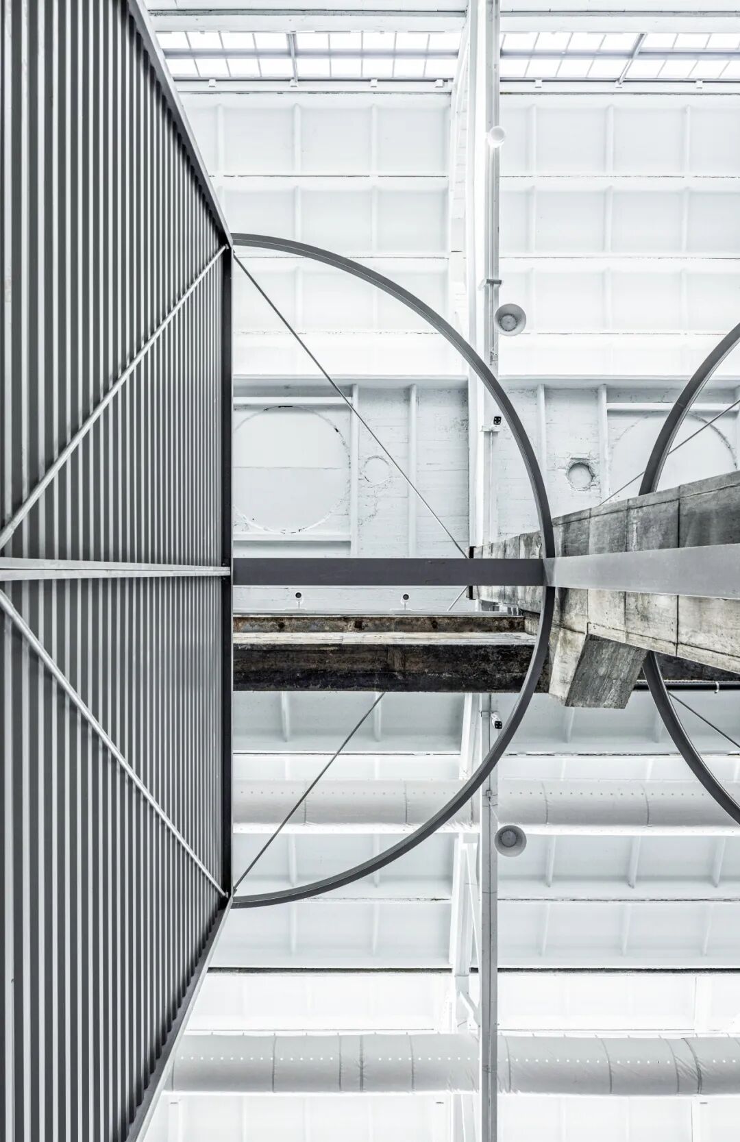 旧吊车轨道是过去空间中机械轰鸣所撼动的记忆,新嫁接的机械设备则为其注入了当下的脉动。新旧轨迹的交融,宛若两个时代的对话,共筑新的场所记忆