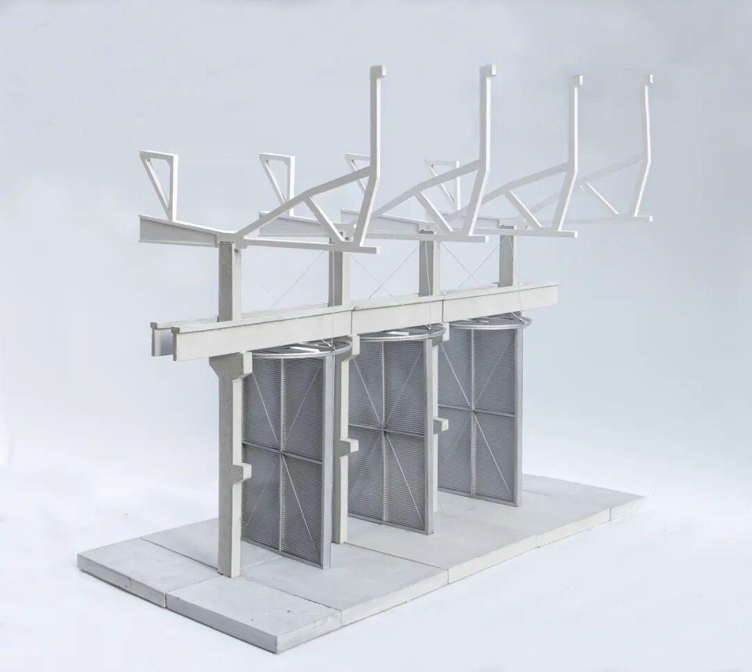老厂房始建于1959年,当年国内的工厂普遍采用苏联的工业建筑设计体系,引入预制和装配技术,统一空间模数和构件尺寸。然而根据实际生产情况,工厂的结构和梁柱的形态有很多适应性的变化。栗若昕在资料中发现了三十种不同的排架柱做法,其中十五种都能在杭氧的老工厂内找到。