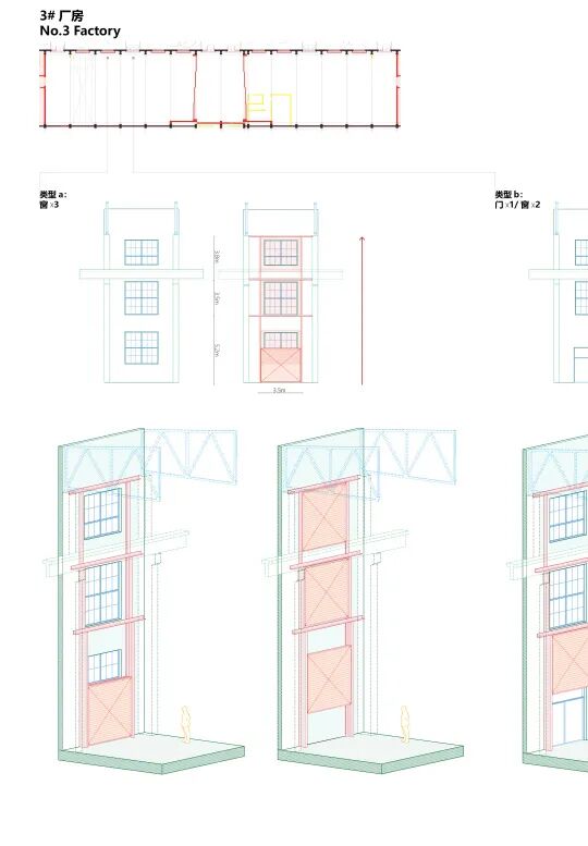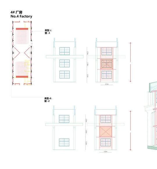 做初步设计的时候,栗若昕再次来到厂房,他突然发现测绘图纸上看起来一模一样的柱子,细看之下竟然都不一样了。牛腿柱侧翼的高度、形状、位置,以及柱子之间的间距都有差别。他开始重新阅读厂房,重新审视项目的方案。