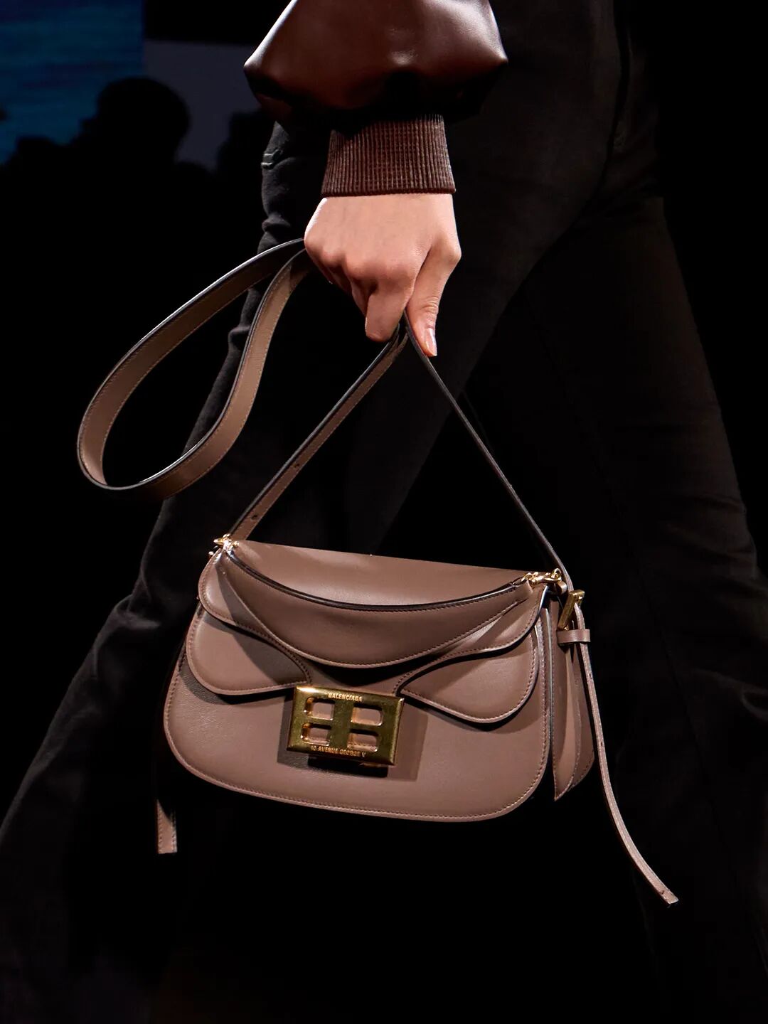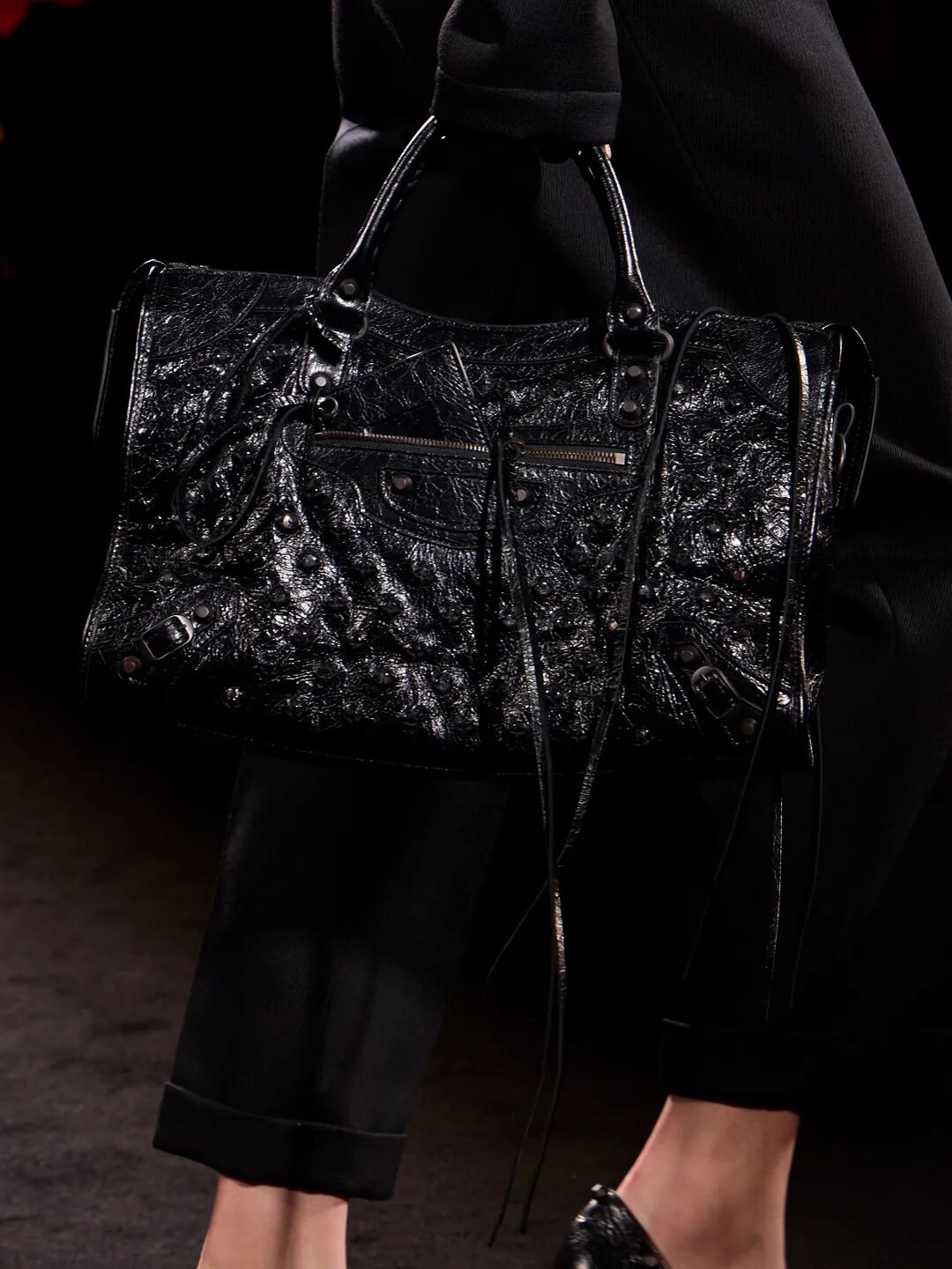 全新George 手袋饰有全新Balenciaga 标识,其造型由包款内部空间定义。