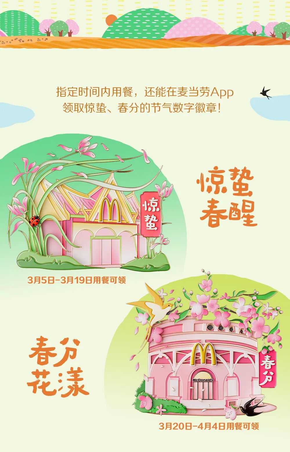 2026年3月5日至19日,用户需登录麦当劳会员账号,并通过麦当劳APP下单任意金额,完成订单后即可获得惊蛰节气数字徽章1枚。