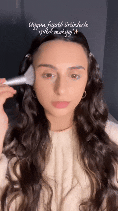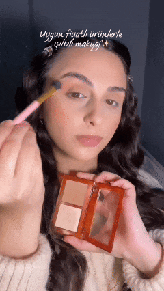 腮红决定氛围,位置和浓度可以根据想要的风格调整,由外向内轻扫。鎏金妆选杏色或裸色系的腮红;如果想要粉色少女氛围,可以打重一点,甚至在鼻尖也可以轻轻带一点;气色妆可以用杏色腮红淡淡地扫一层。