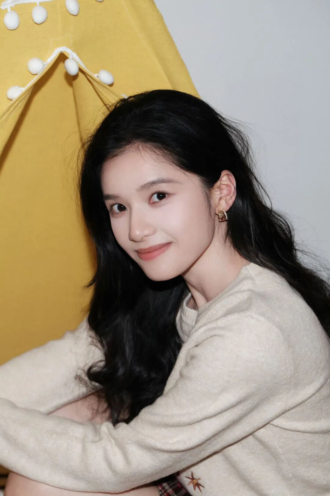 陈昊宇的整体妆容看起来皮肤透净自带光泽感,像自带柔光。眉毛保留了自然的毛流感,根根分明但不刻意。淡淡的珠光眼影和同色系的裸色口红相呼应,整个妆面不争不抢,却把她那种宁静温柔的气质衬得刚刚好。