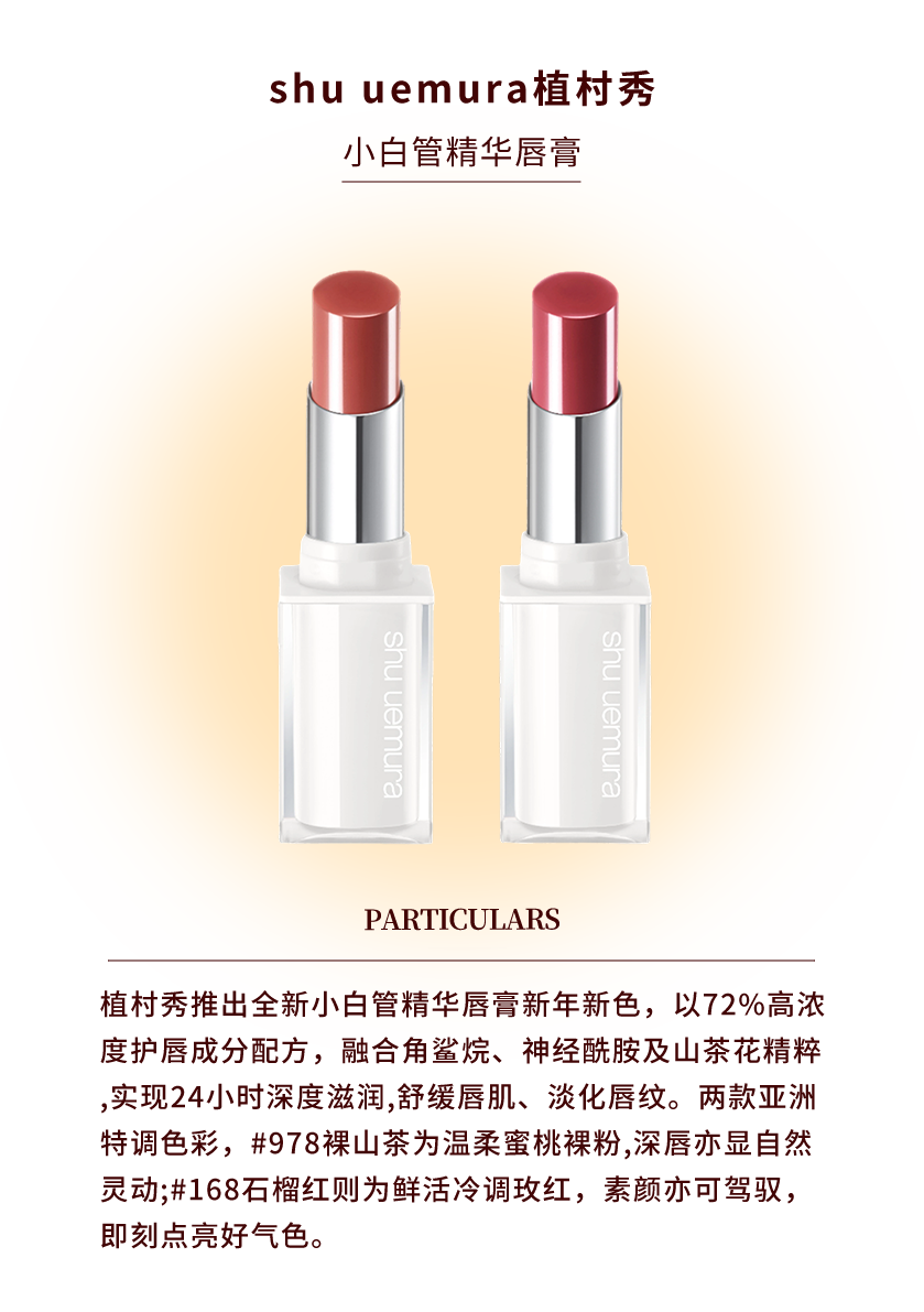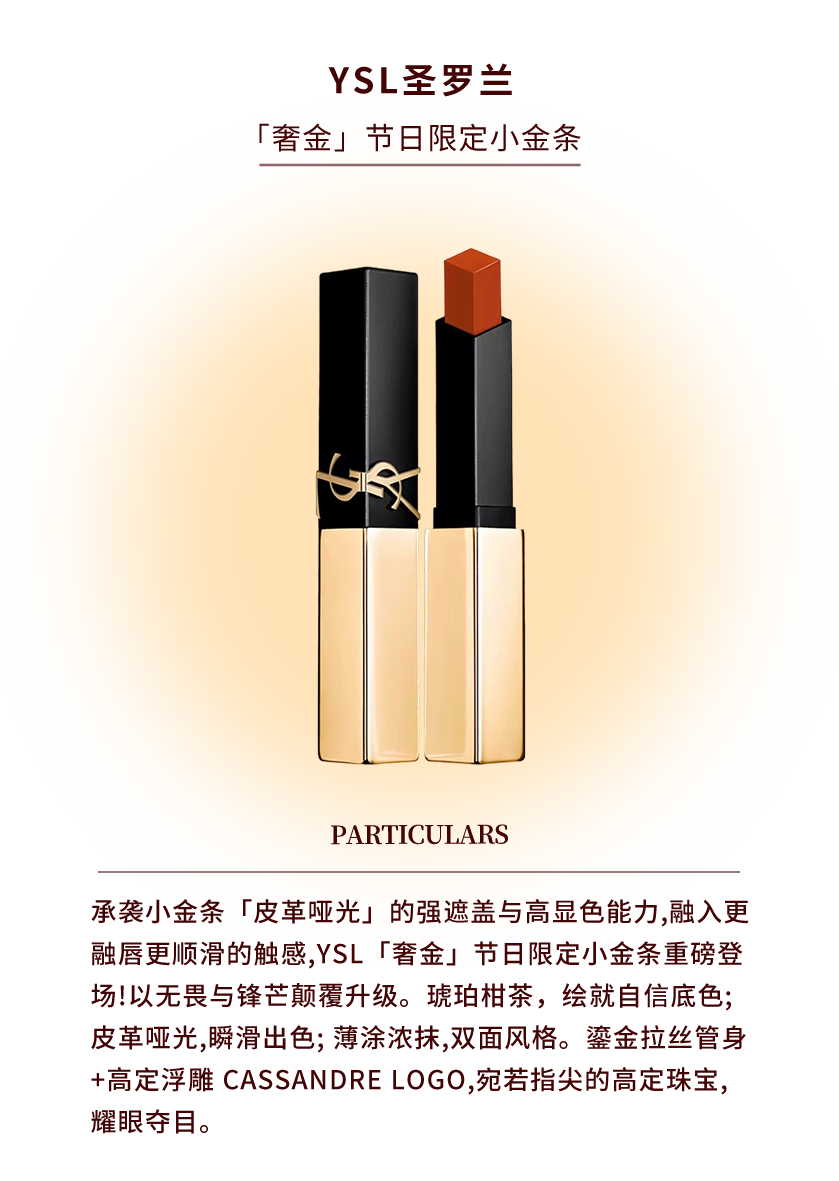 口红重在打造饱满唇形,可以薄涂一层哑光色,鎏金妆选橘调或红棕调的口红;少女妆的莹润感,则可以再叠加一层水润质地的唇釉;气色妆可以选豆沙色、橘粉色、裸色系的丝绒质地口红,薄涂一层即可。