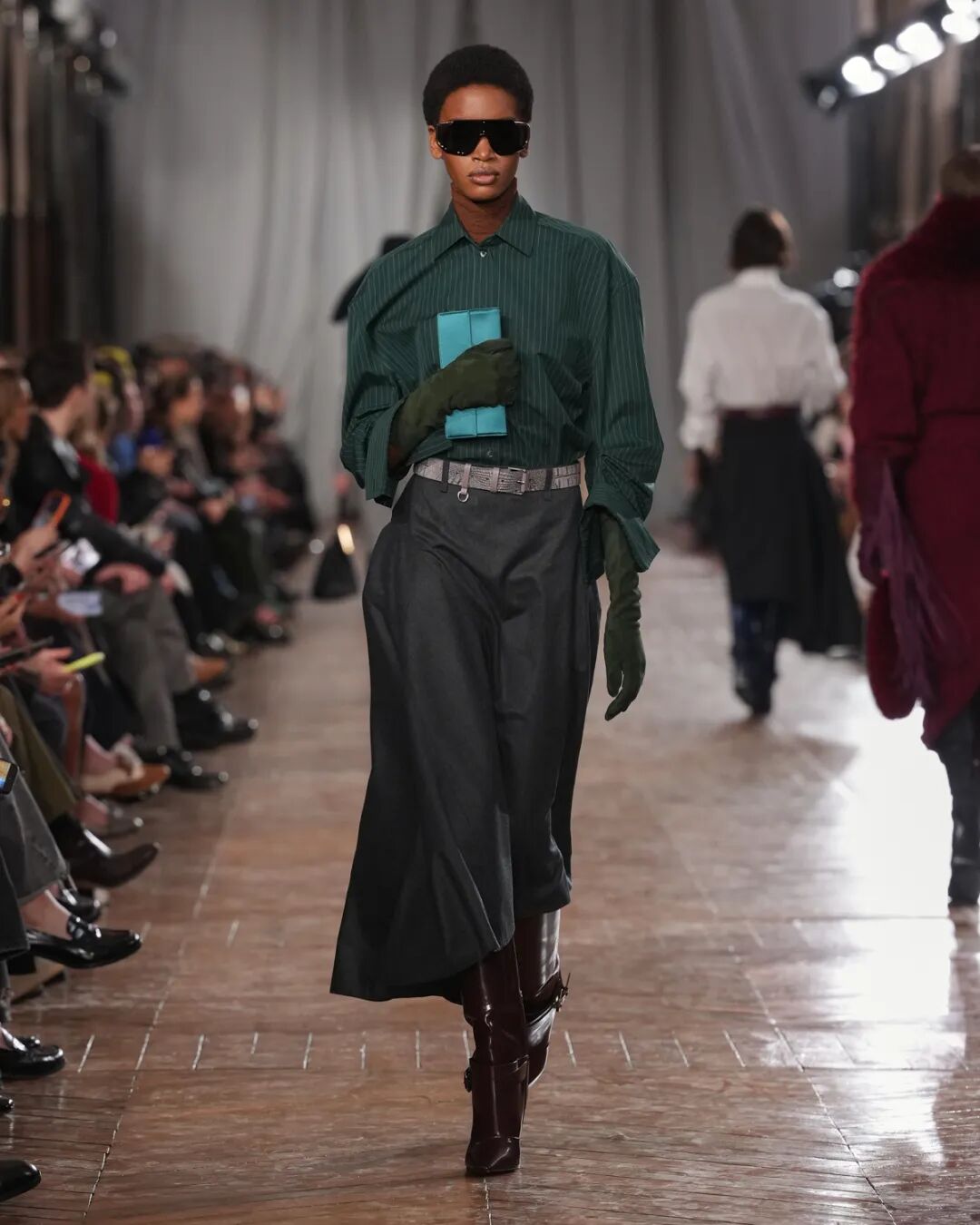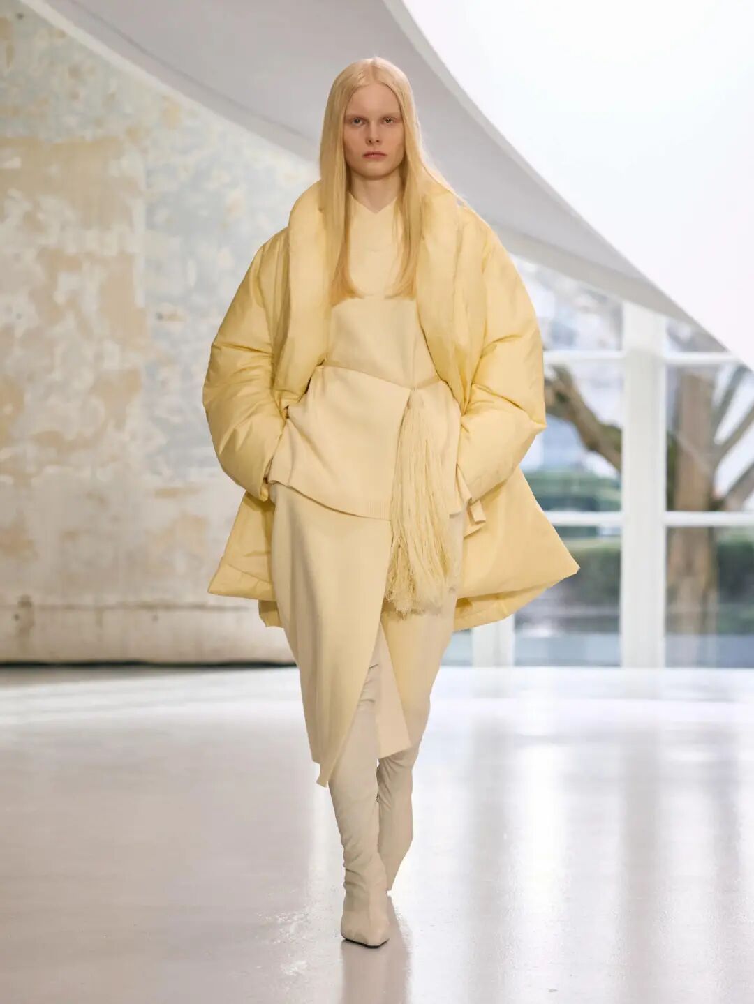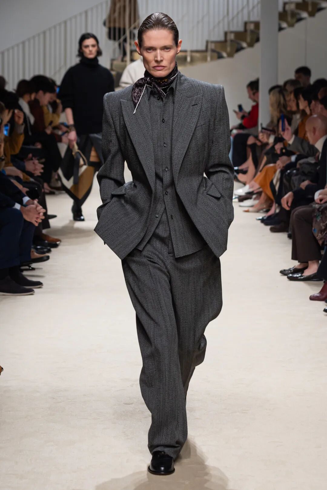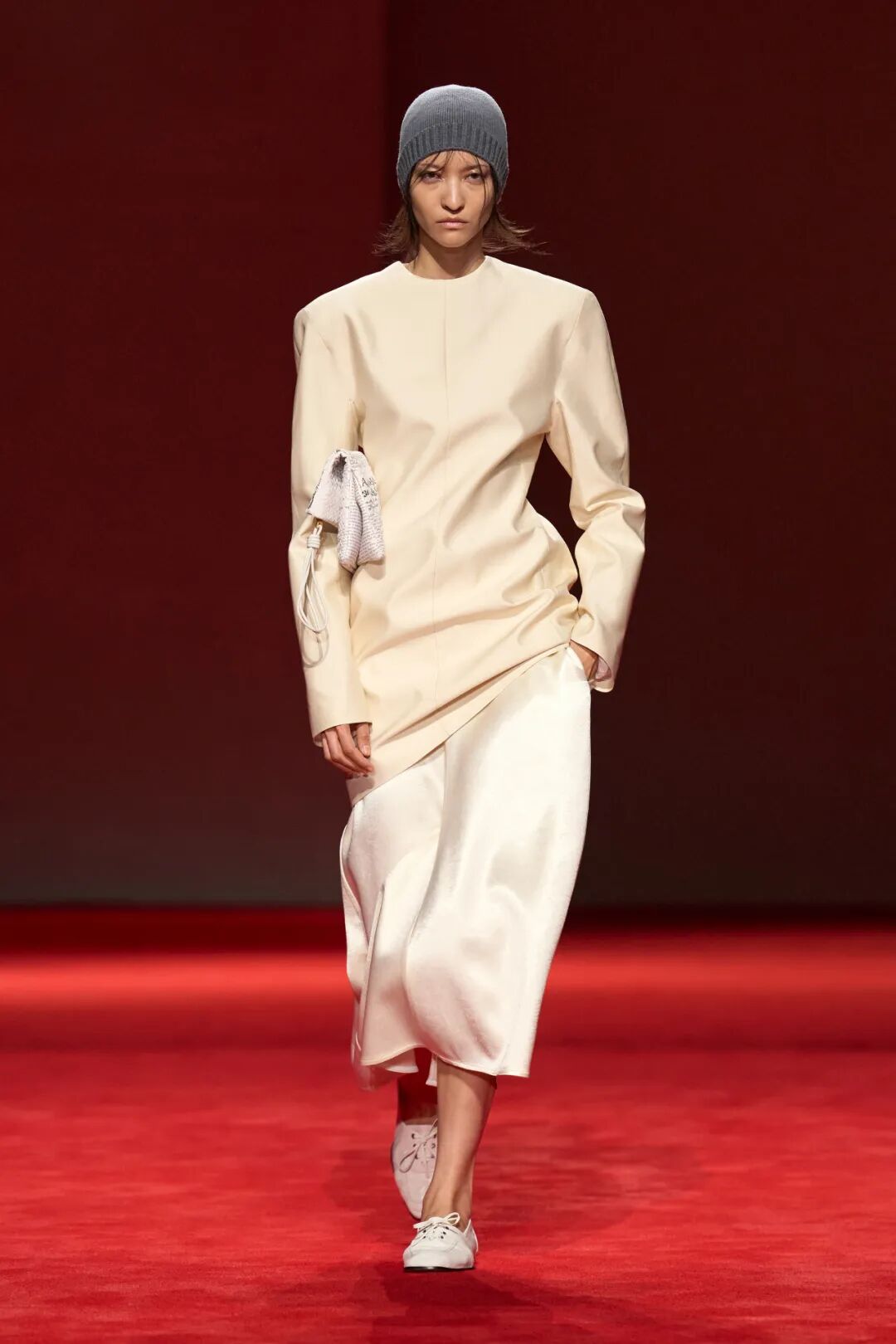 而今天的室内空间,弥漫着一种阴郁的氛围。但同时,这些女性所展现的姿态——她们为经典服饰注入全新生命力——恰恰彰显了我们充满希望的视角。自1996年以来,我用诸多热爱与执念塑造了Acne Studios的世界,而品牌的传承属于我们所有人,并由我们持续向前延续。”——Jonny Johansson