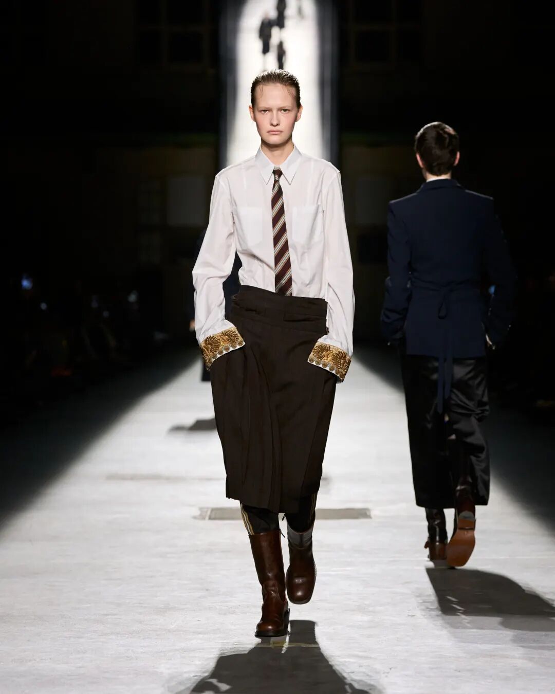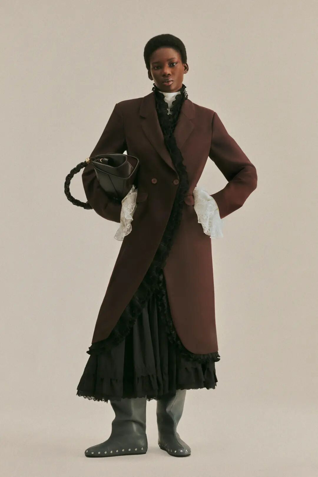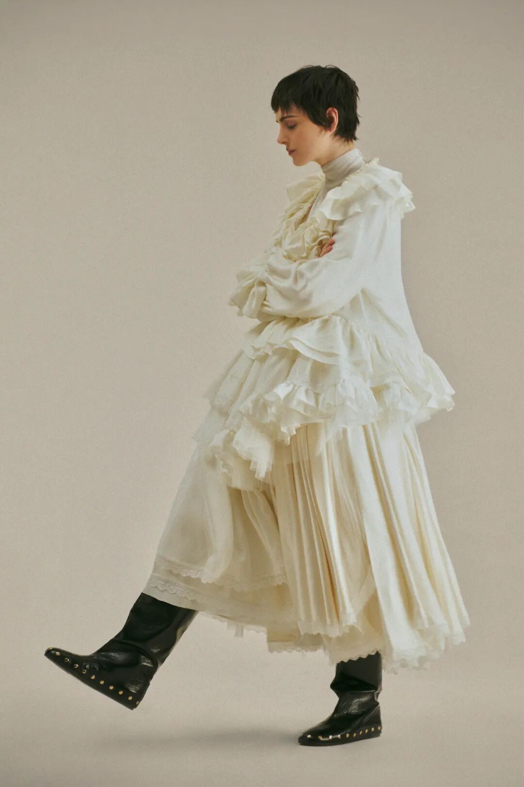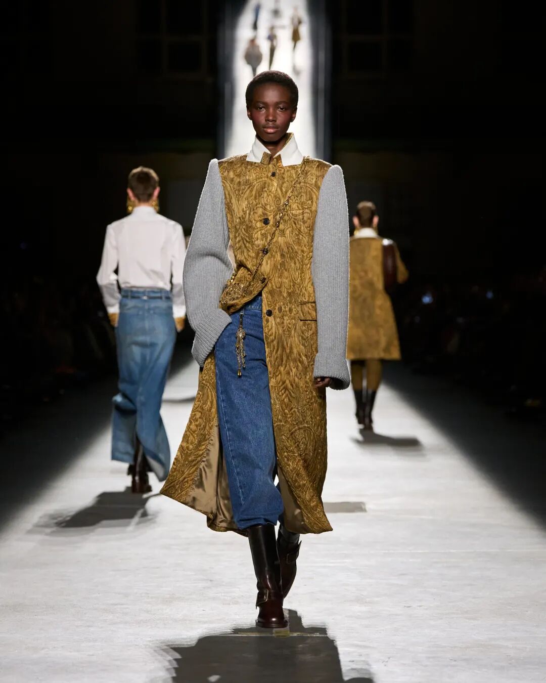 而今天的室内空间,弥漫着一种阴郁的氛围。但同时,这些女性所展现的姿态——她们为经典服饰注入全新生命力——恰恰彰显了我们充满希望的视角。自1996年以来,我用诸多热爱与执念塑造了Acne Studios的世界,而品牌的传承属于我们所有人,并由我们持续向前延续。”——Jonny Johansson