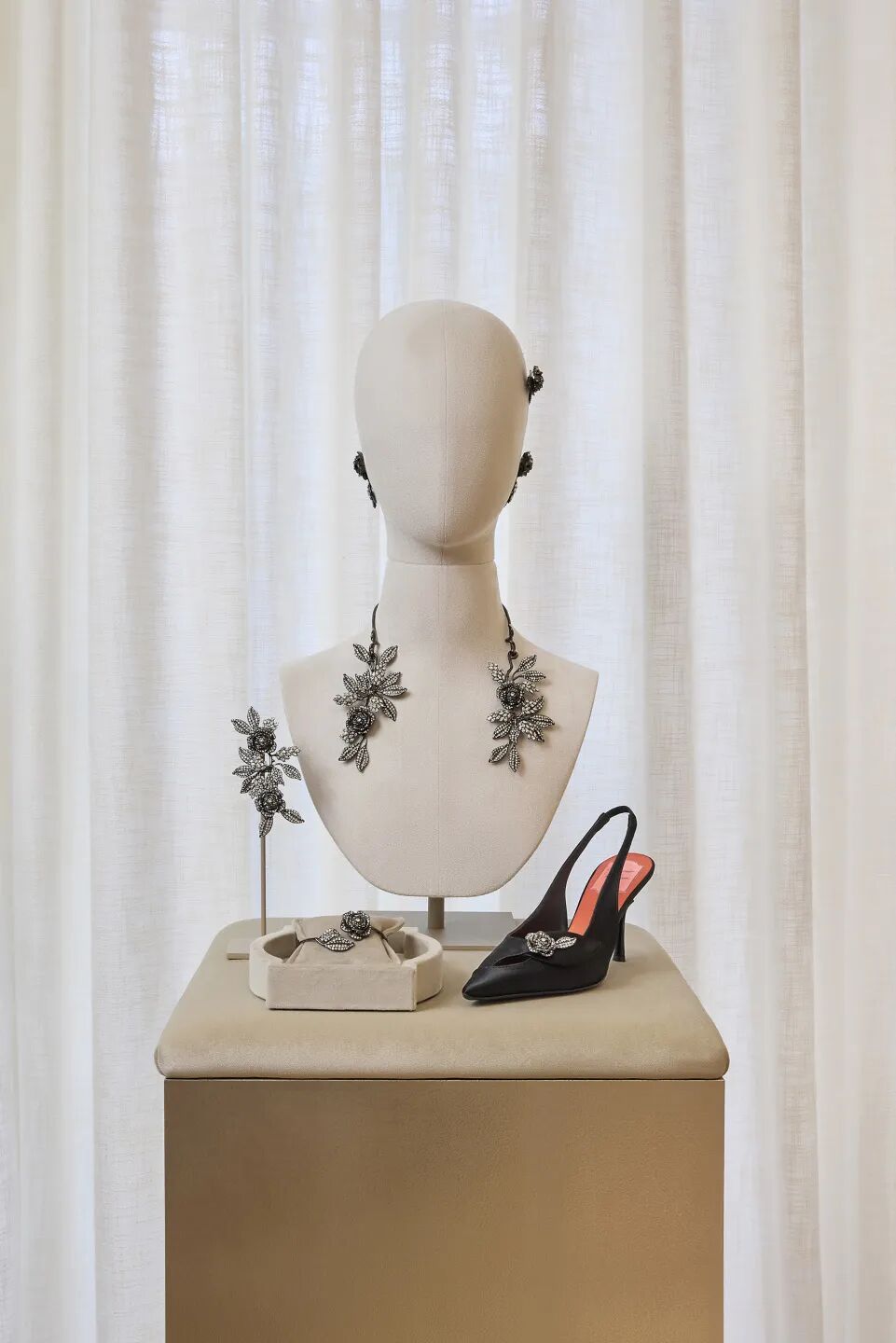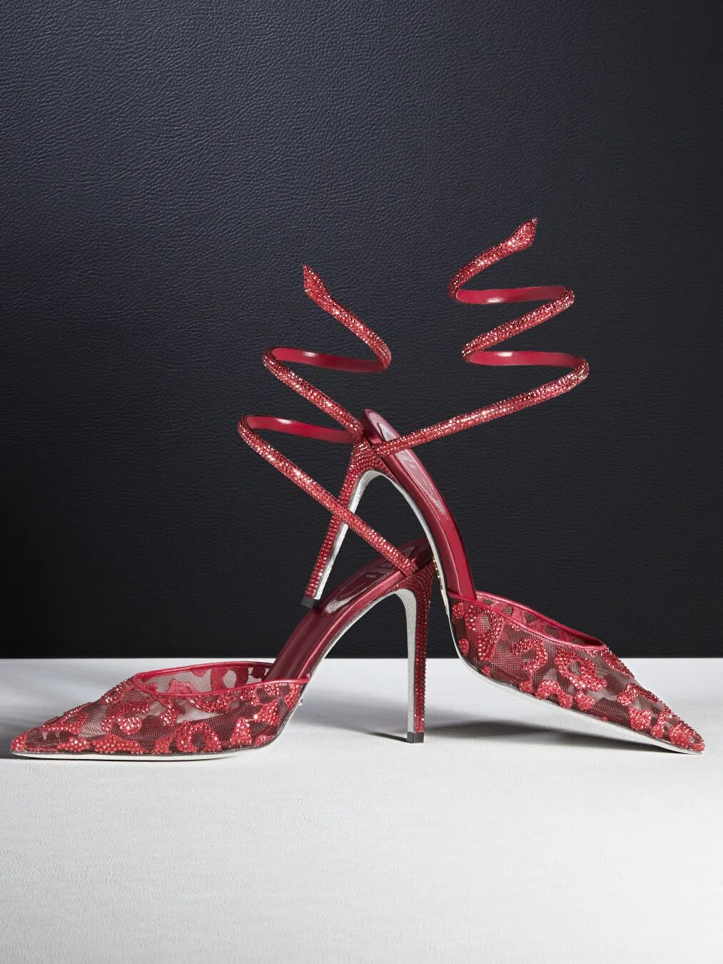 高跟单鞋、露跟鞋和凉鞋共同定义全新Allura系列,塑造出一个将非凡工艺和创意才思与品牌传统完美交融的精巧世界。透明网纱鞋面隐约透出细腻的豹纹图案,纯手工镶嵌的同色系水晶则增强了透明材质与光影折射的交织效果。