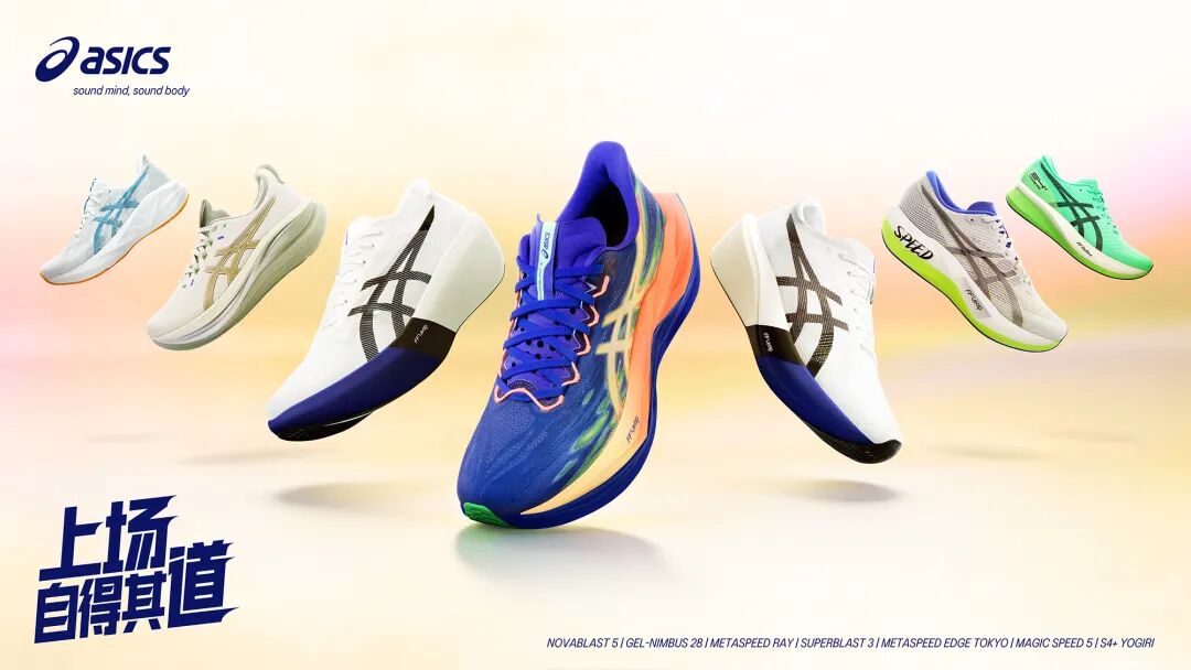 除多方位的赛事支持外,ASICS亚瑟士应马拉松赛季备赛训练、比赛竞速、赛后恢复三大场景需求,为跑者迭代出新一季的“跑鞋方程式”,以系统、专业、科学的产品矩阵,支撑不同阶段跑者享受赛道,助力跑者实现“上场·自得其道”。