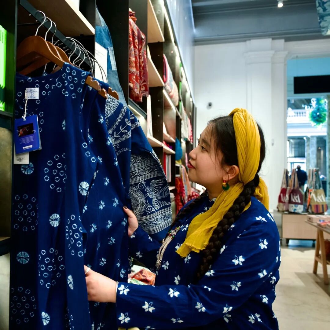 根据 V&A 博物馆官方微信公众号报道,Yi Crafts 入驻 V&A 的选品包括白族扎染裙、扎染扇及苗族蜡染上衣等。这组选品所体现出的中国传统文化的独特性,不仅吸引了博物馆的文化消费群体,更产生了显著的品牌回流效应:许多顾客通过产品标签了解到品牌,进而转化为线下工作坊的深度参与者。