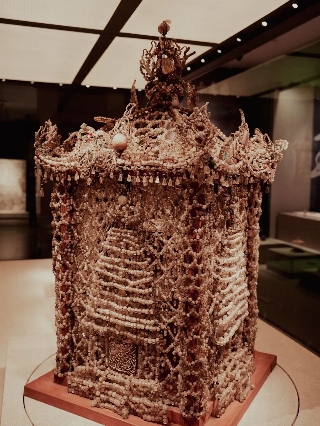 1988年的考古发掘中,北塔天宫跨越千年重新开启。一座以金银、玉、水晶、琥珀、珊瑚、琉璃、贝壳与碧玺等珍材制成的“七宝舍利塔”重见天日,再次闪耀出久违的光彩。天宫中还出土了来自古罗马帝国的波斯玻璃瓶、錾刻佛经的鎏金银塔与金银经塔,诉说着草原丝路上跨越万里的文明往来。而现供奉于龙翔佛寺的佛祖真身舍利,也在此静候着后世的到来。