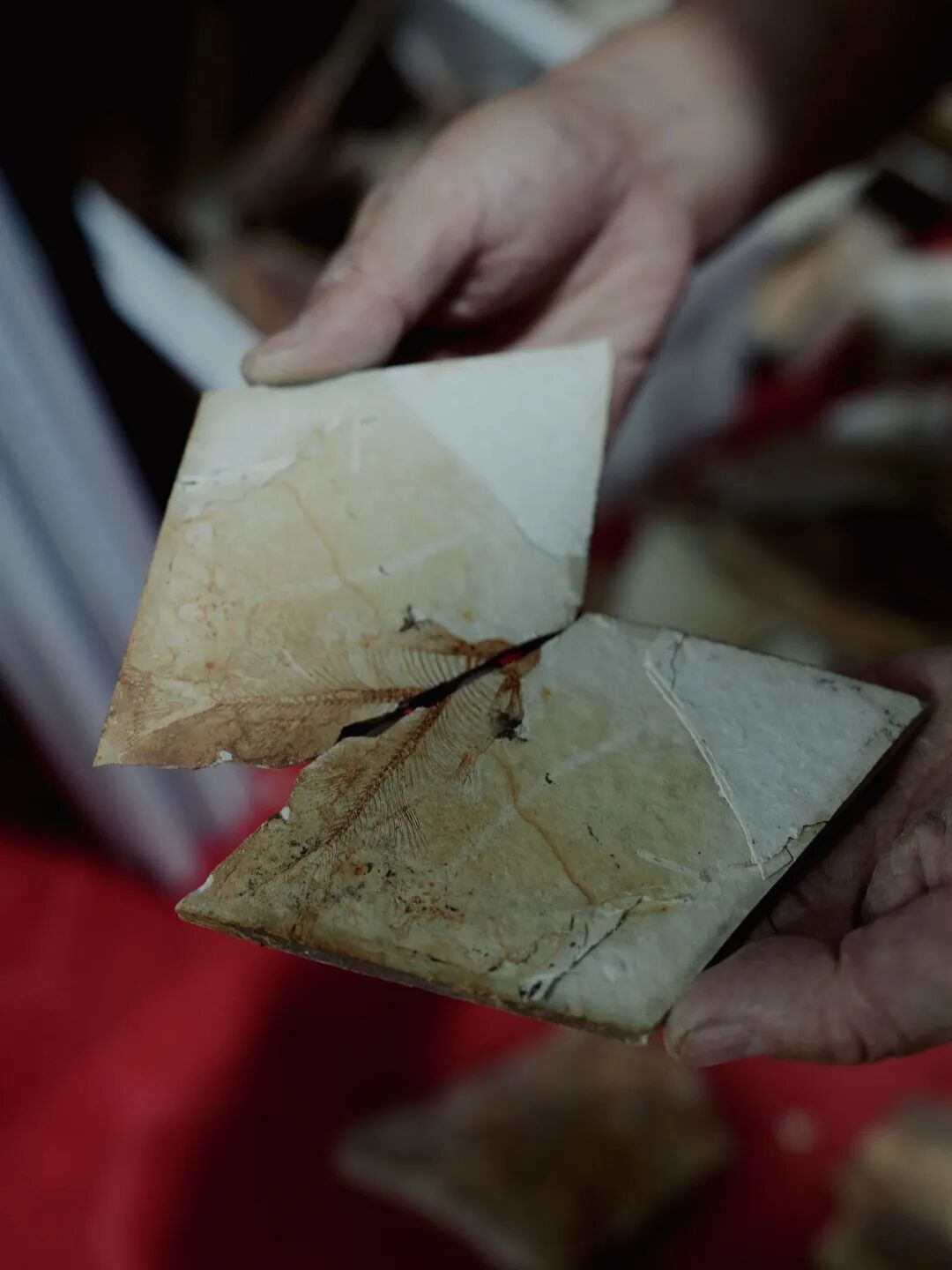 在这里,化石似乎多得有些“廉价”。老板神神秘秘指着门口堆着几箱巴掌大的石板告诉我,朝阳的化石多到什么程度呢?多到可以卖“盲盒”,十块钱、二十块钱一块,买回去自己慢慢敲,运气好就能敲出一条完整的小鱼。当然,在城区之外,有些地方甚至可以随地捡到。