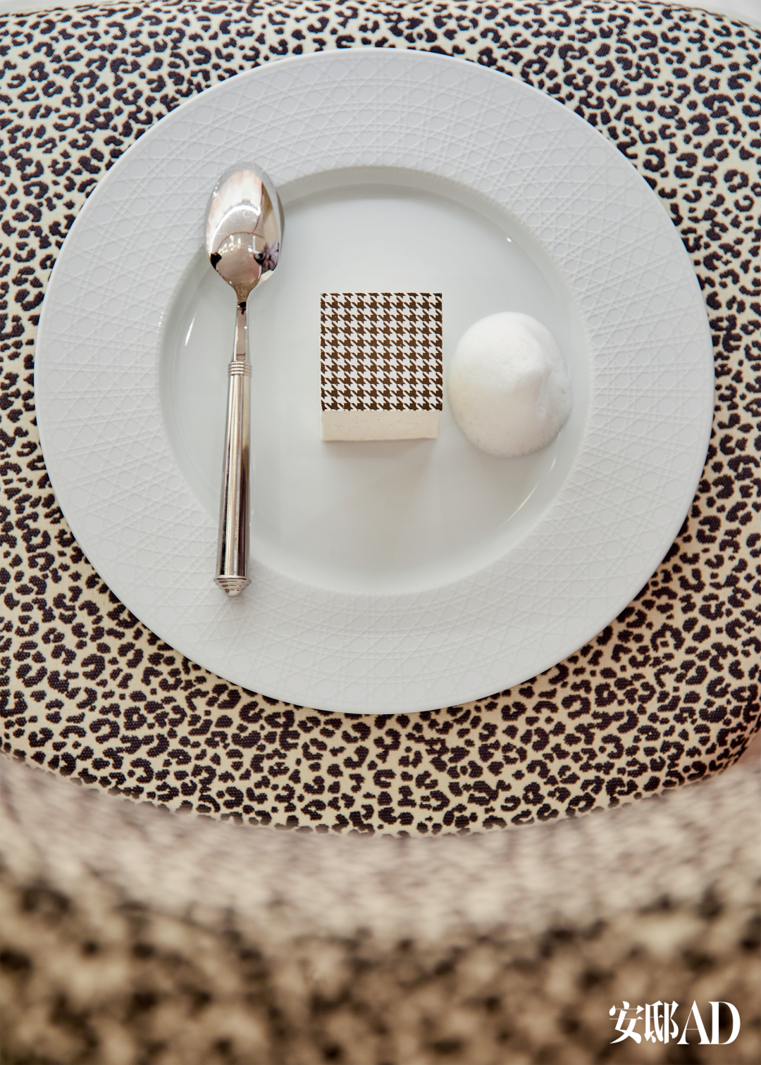 艺术是创作,迪奥先生认为烹饪与高级订制时装一样,也是一种艺术创作,他对烹饪的热爱促成了私人食谱书La Cuisine Cousu-Main的诞生,这本书也为后来的迪奥餐厅提供了灵感。“这道豹纹三角折饺的造型很特别,不知上面的花纹究竟是怎么做出来的?”