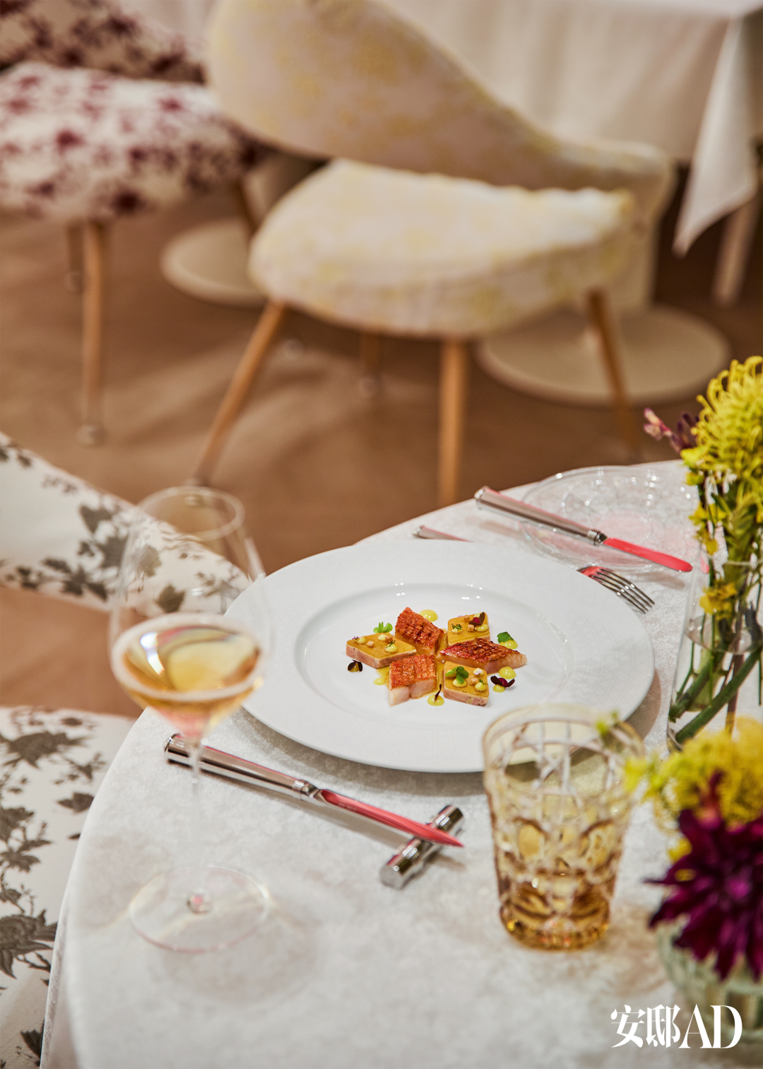 故事是角色的骨架,而人物的内心才是他的灵魂。就像画画一样,有形更要有神,才能真的走进人心里去。”这也与安娜-索菲的美食创作寻得投契之处。安娜-索菲是法国首位米其林三星女主厨,也曾经历是继承厨师世家的料理传统还是建立自身美食语言的踟蹰,最终坚定探索出了属于自己的道路。