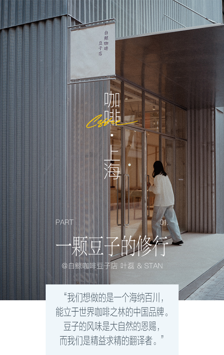 上海“海纳百川”的海派精神,也融入了我们的品牌基因。我们的名字“白鲸”源于美国小说《白鲸记》(Herman Melville著),但标识却坚定地用了中文。我们想做的,是一个能立于世界咖啡之林的中国品牌。