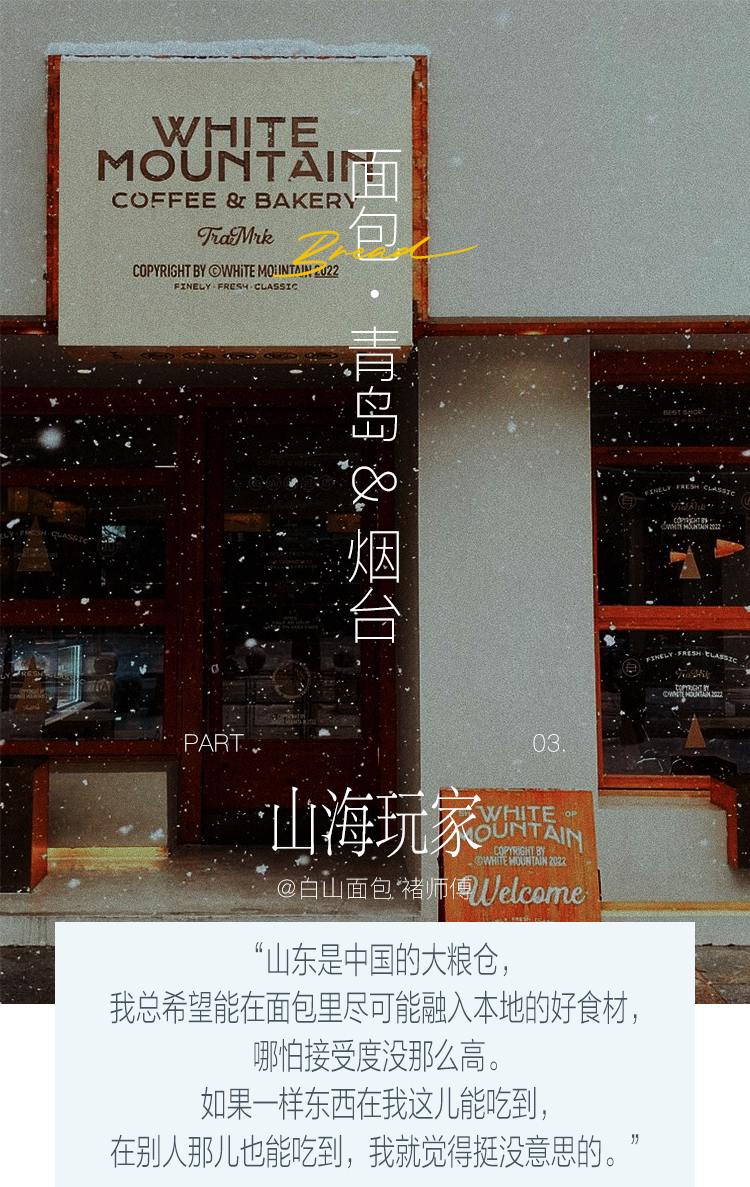 但是爱好也丢不下,我就想,要不我就在烟台这边开一家店,把旅行、户外这些综合性的生态都容纳进来,而且能兼顾我的本职工作,顺便开店。但是烟台毕竟是个小城市,市场接受度有限,所以我就决定从餐饮开始,毕竟我自己也是喜欢到处吃的人,餐饮和人的距离很近,而面包和个人的距离会更近。