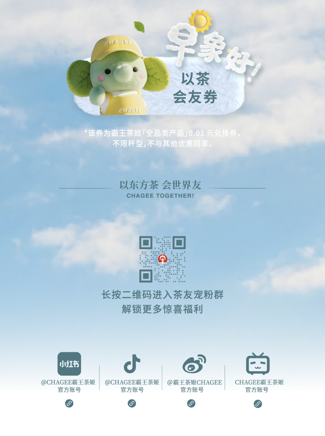 文章内容来源于公众号:霸王茶姬CHAGEE,点此可查看原文,内容版权归相关企业所有,本网站仅供交流学习。若涉及版权问题或存在侵权情况,请及时与我们联系,我们将第一时间进行删除处理。