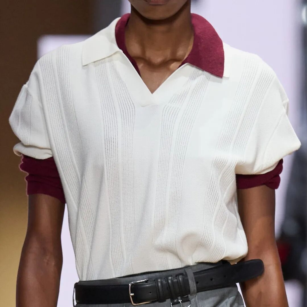 在本季秀场上,FILA 将品牌最具代表性的几类单品重新推向舞台中央:夹克、Polo 衫、苏珊裙与鞋履。其中一些跨越时间的经典单品,被重新放入 “高级运动时装” 的语境中进行重构。夹克以品牌传奇单品 Settanta 胜利夹克的经典版型,结合更加利落的结构、时装面料与功能面料重新塑造都市轮廓;Polo 作为品牌历史最具象征意义的单品,在面料和比例上被进一步精细化;Susan 裙则以时装面料和加长版型,延续品牌在女性都市优雅上的表达;而鞋履则成为连接运动功能与都市风格的关键支点。通过这些核心品类的持续革新,FILA 将品牌的历史资产转化为当代设计语言,也让产品体系形成清晰而稳定的识别度。