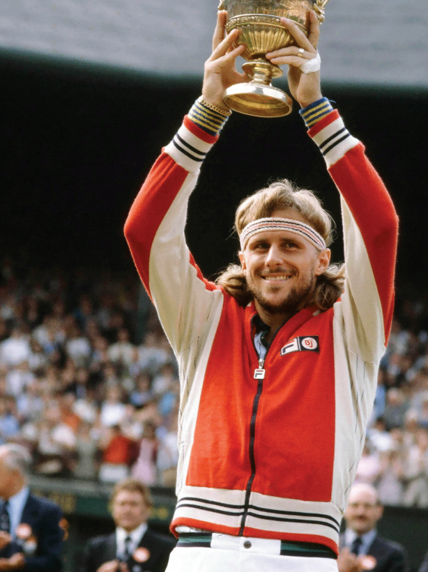 真正让世界记住 FILA,是 1974 年。瑞典网球传奇比约·博格 Björn Borg 穿着条纹蓝色领 Polo 衫征战红土赛场——这是职业网球白色着装体系里第一次出现大胆色彩。运动本该严肃,却被风格突破了边界。随着比约·博格身着这件 Polo 衫不断拿下大满贯冠军,这件设计也逐渐成为 FILA 最具代表性的传奇单品之一,并被正式命名为 “BB1 大满贯 Polo”,意为 “Björn Borg One Polo”,既纪念博格的冠军时代,也象征这件单品在品牌历史中的标志性地位。