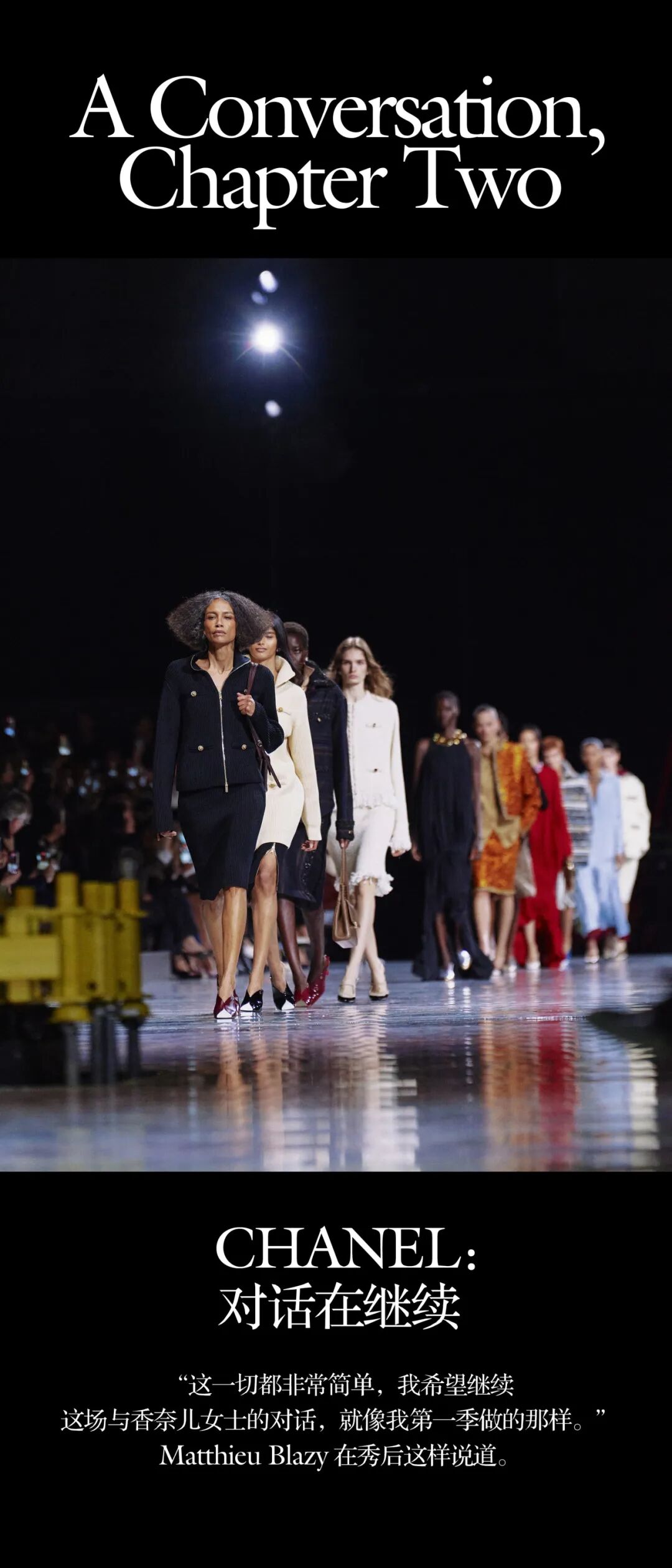 什么是CHANEL女性?Blazy已经有了许多关键词,它是摩登的、轻盈的、矛盾的、普适的、真实的。然而对话还在继续,他的探索也才刚刚开始。