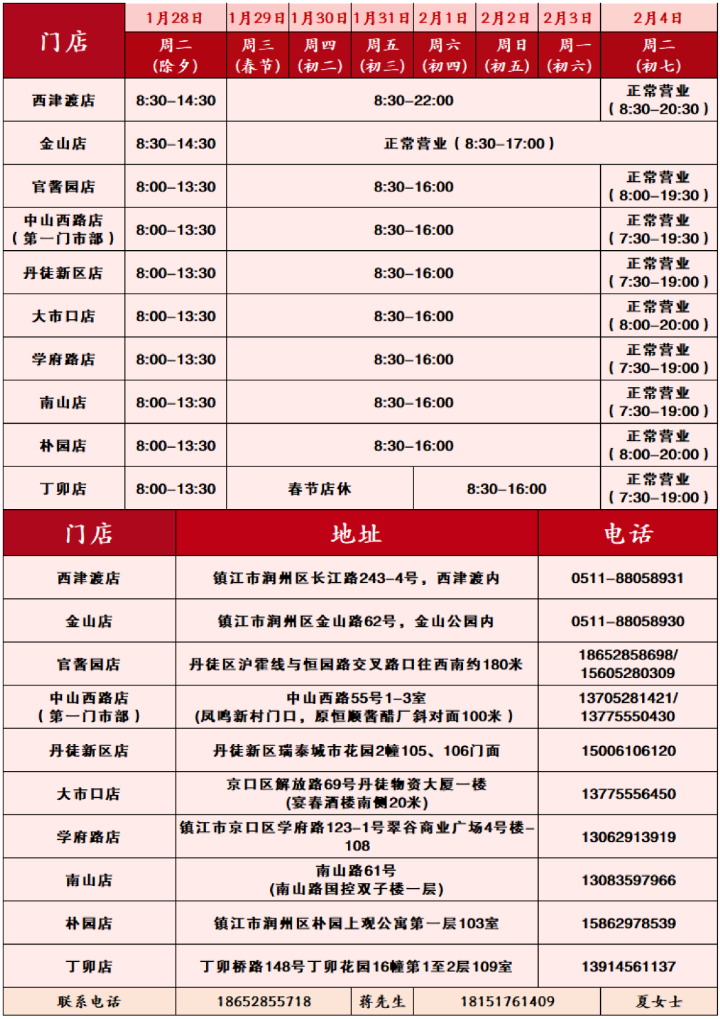 春节营业时间