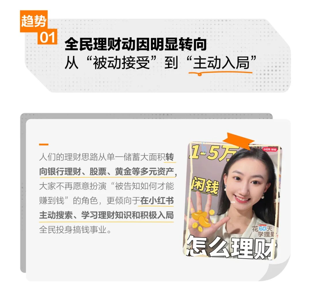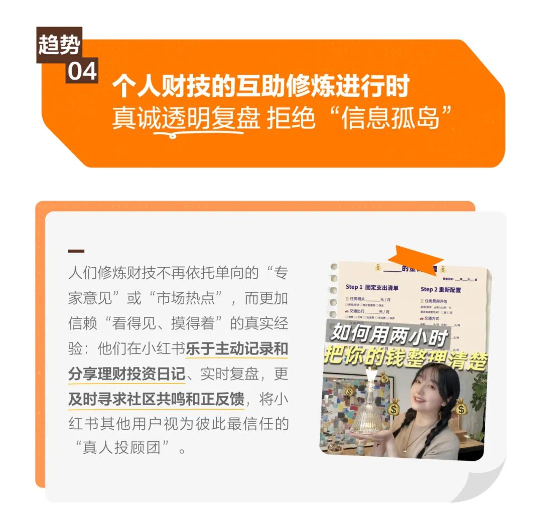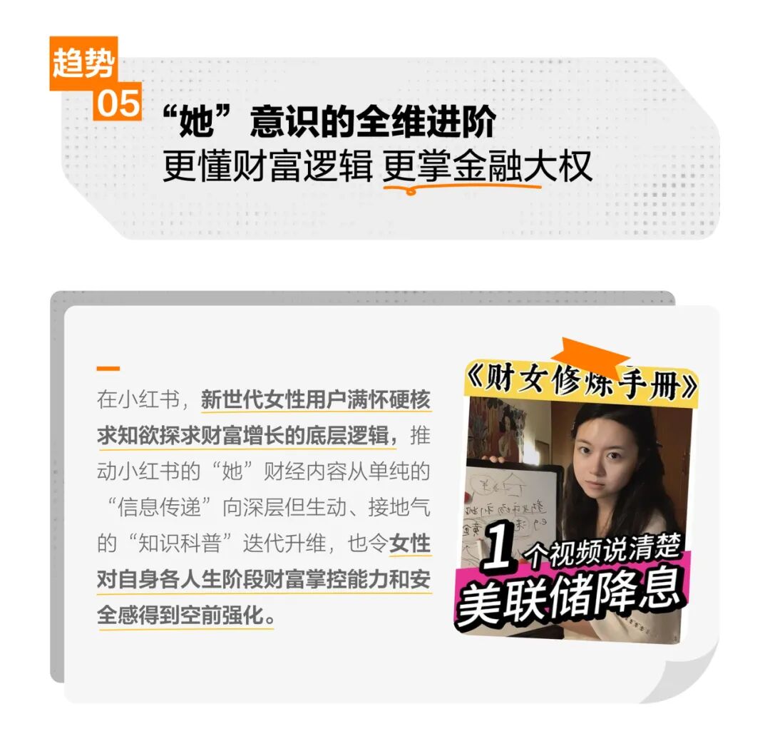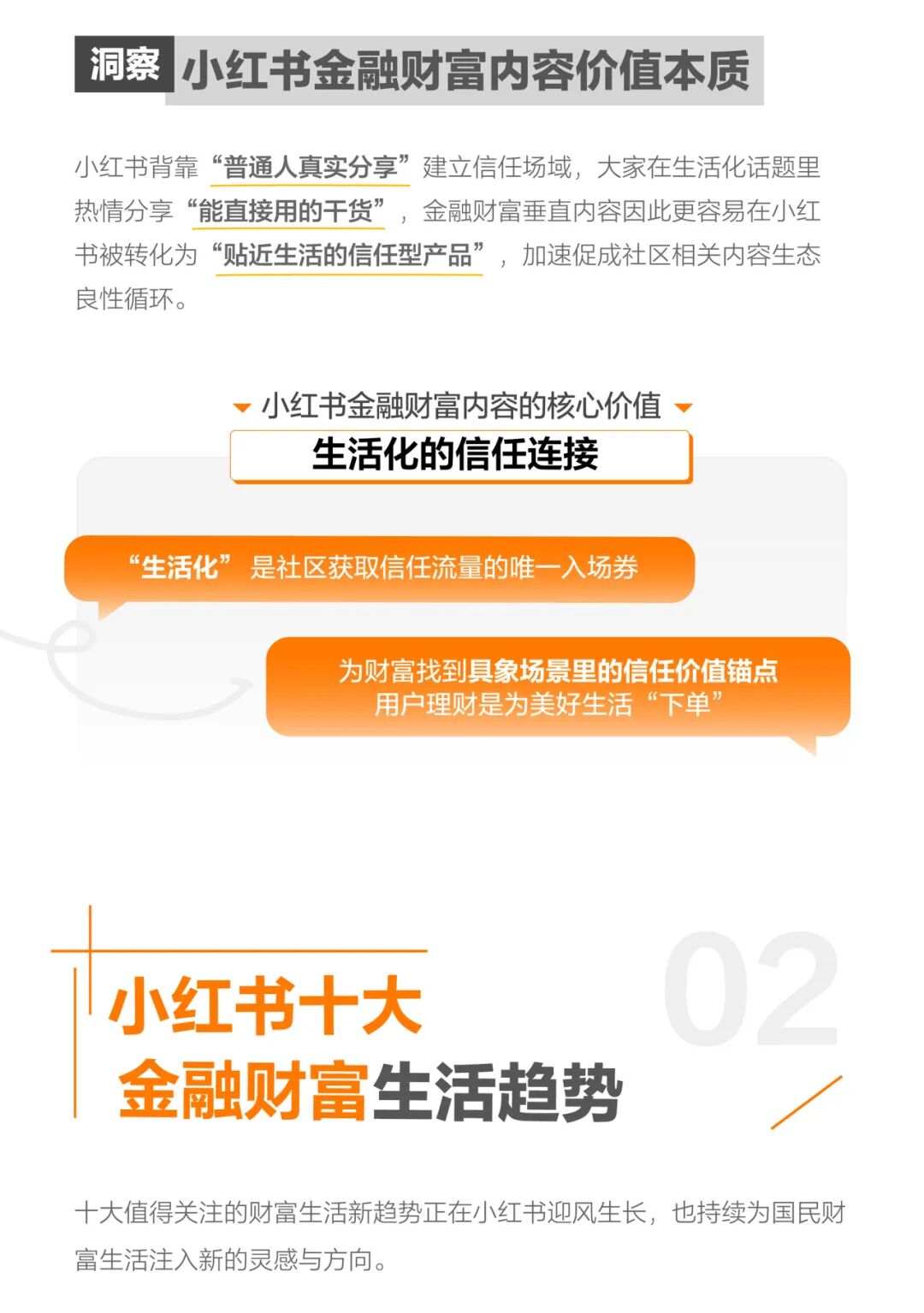 在小红书,每一种金融财富的需求,都扎根于真实的生活场景,呼唤着对应的生活答案。新的金融财富生活趋势和人群在这里汇聚,也吸引更多金融机构深耕小红书,基于“人感”和信任,与生活进一步连接,推动社区金融内容生态正向循环。