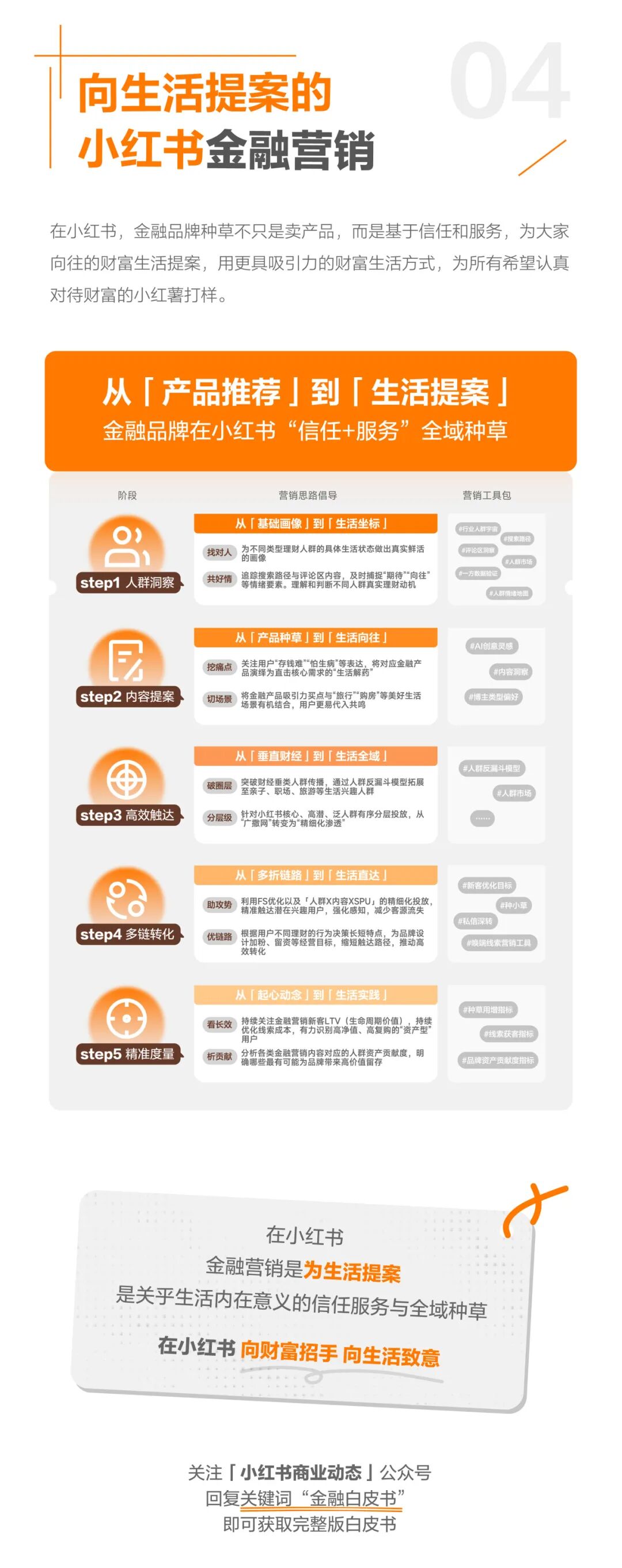 3月,小红书联合第一财经商业数据中心(CBNData)发布《小红书金融行业白皮书》,主张金融营销应向生活提案,为未来财富生意增长找准清晰路径。