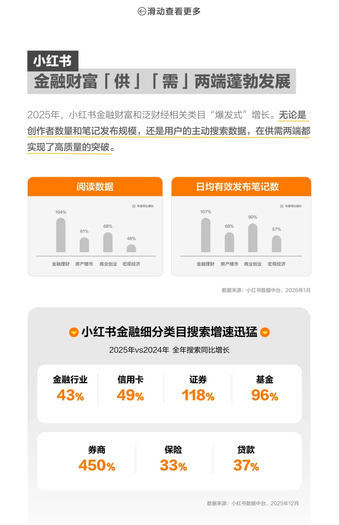 当前,我国金融市场改革深化,居民财富管理需求升级,推动金融行业重新审视增长逻辑。小红书作为月活跃用户超3.5亿的生活兴趣社区,金融生态正在供需两端快速增长,年轻人在小红书搜索和学习理财知识成常态,金融机构KOB账号与从业者KOS账号加速入驻,高质量UGC内容持续爆发。
