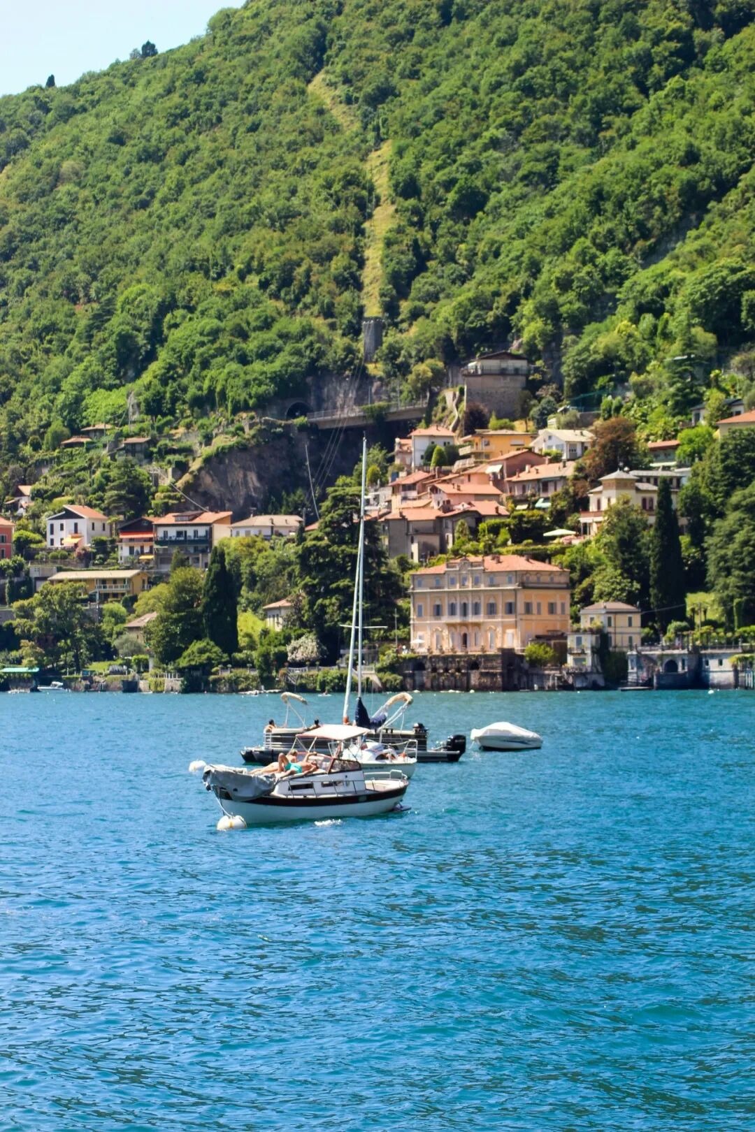今天,泛舟于科莫湖区依旧是最好的游览方式,想要领略这里的两岸风景,必须离开岸边,替换掉陆路视角。贡多拉升级为更现代精致的小游艇或渡轮,倚卧在船上缓缓航行,水中倒影影影绰绰让人似乎能看到几个世纪来科莫湖繁荣的幻影。