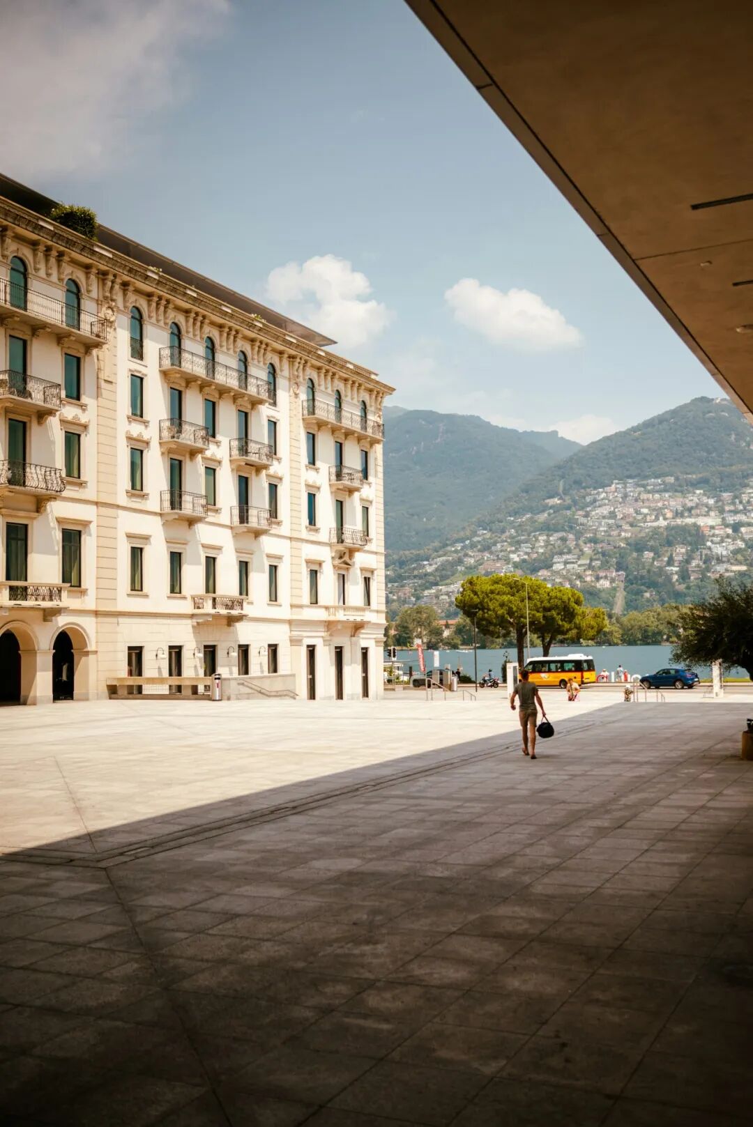 顺着湖区再向西走,便到了意大利第二大湖——马焦雷湖。湖畔这座与卢加诺名字相近的洛迦诺小城,却完全长成了另一种样子。若说卢加诺的魅力在于收藏、财富与湖居生活交织出的精致秩序,那么洛迦诺的吸引力全然在夏夜里缓缓亮起的银幕。它同样拥有提契诺的阳光、山影与棕榈树,却因为一场世界级电影节,而生出了别处难以复制的城市个性,一种属于电影的梦幻在此生发。