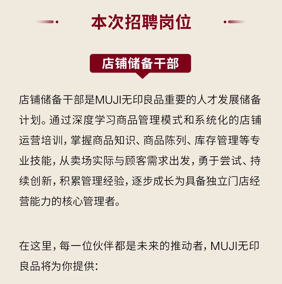 摘要:2026年MUJI无印良品春季店铺储备干部招聘正式开启。