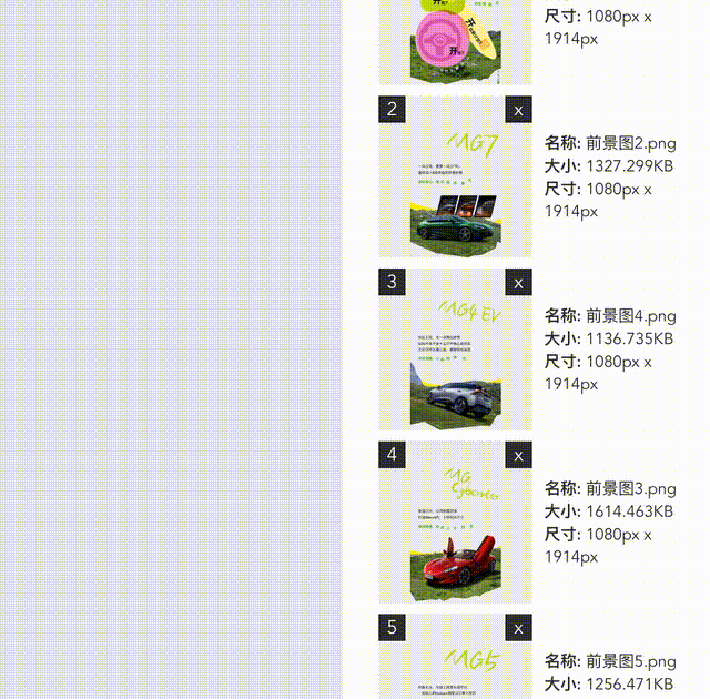 点击右侧「换图」按钮上传背景图,点击「+」号批量上传前景滑动图。所有图片尺寸需保持一致。