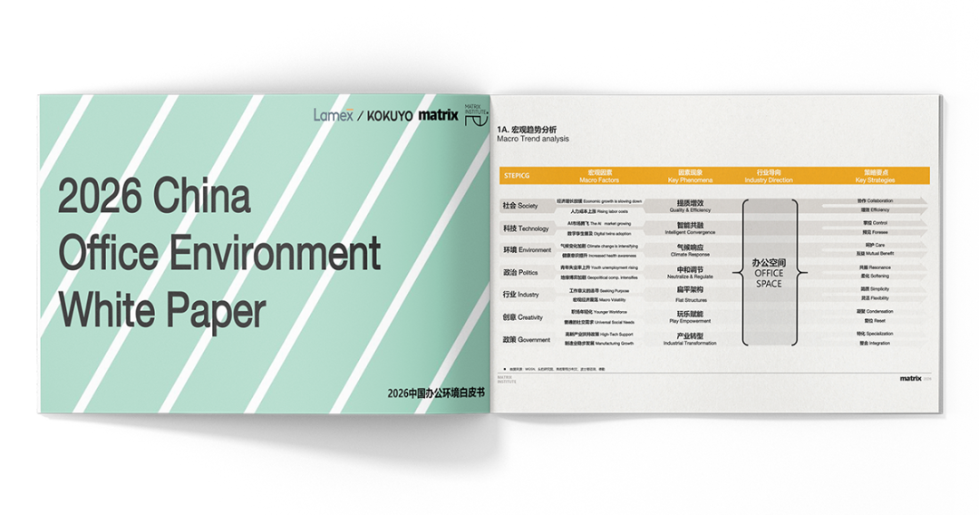 《2026中国办公环境白皮书》(点击图片,前往小程序下载完整行业白皮书)由国誉美时、矩阵纵横及矩阵研究院共同研究发布,旨在凝聚行业共识,为中国办公环境的创新升级提供行动参考。
