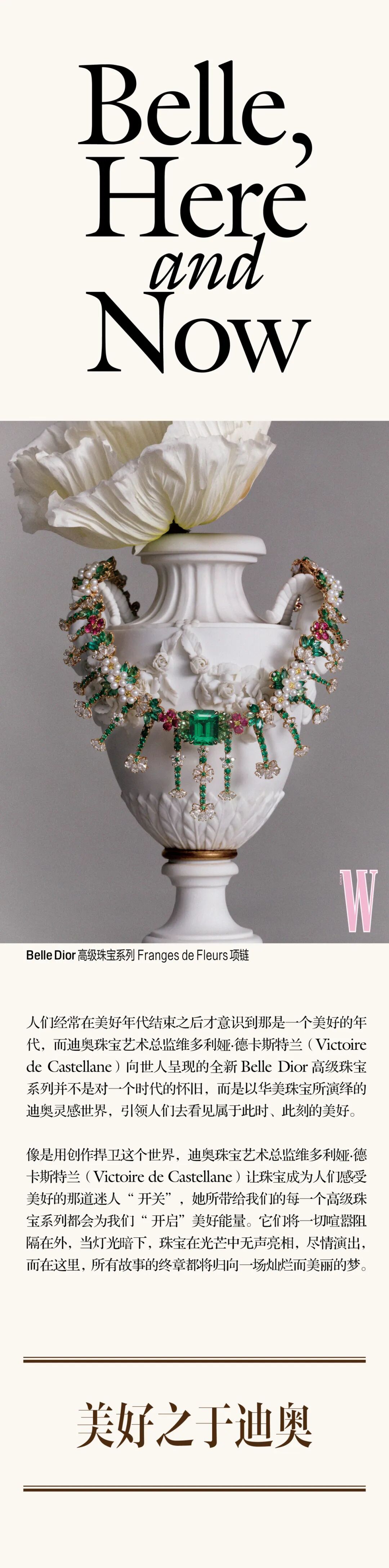 在迪奥先生曾漫步的花园里,在他所着迷的神秘天体上,在奠定品牌底蕴的高级订制服的世界里,我们都看到了属于迪奥的美好能量,而德卡斯特兰正是将花园、星辰、高订这三颗在迪奥宇宙中闪耀的恒星提炼为 Belle Dior 高级珠宝系列的创作核心。